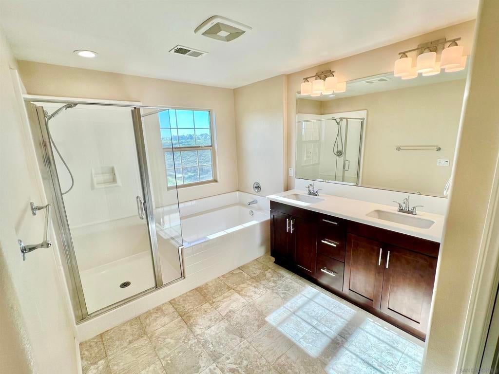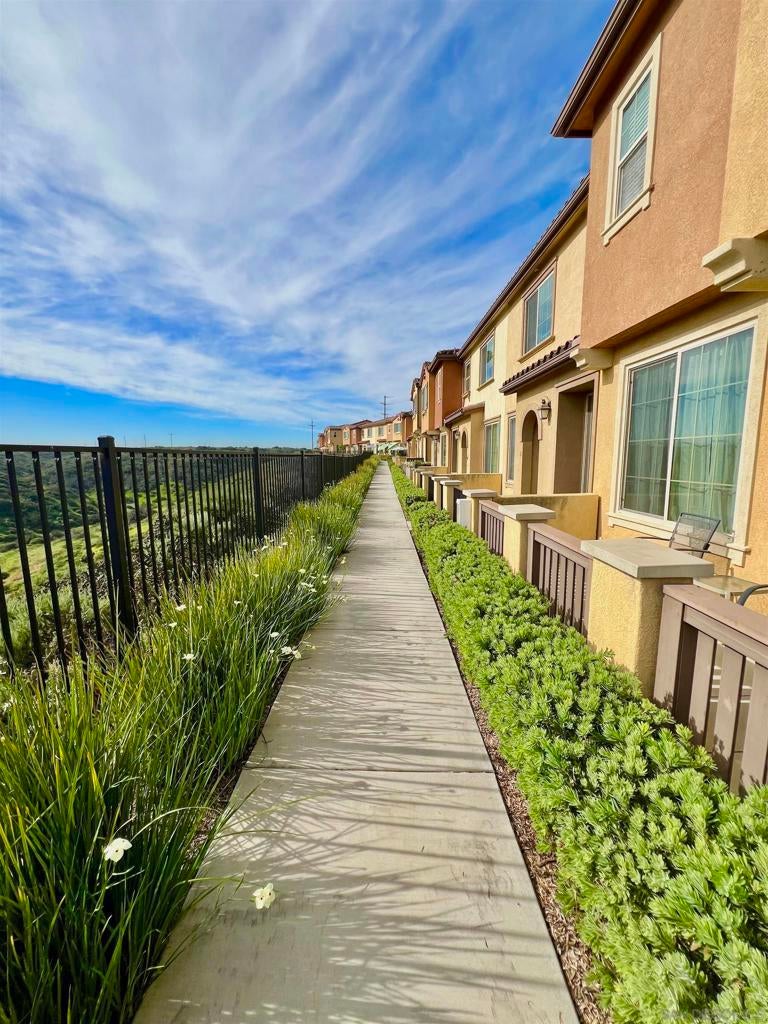 Welcome to this 3 bedroom, 2.5 bathroom townhome in serene neighborhood, design for comfort and modern living. featuring an open concept plan. An Inviting living and dining area, ideal for relaxing and entertaining. Kitchen has granite countertops with ample cabinetry, upgrade tile floor and a pantry closet with direct access to garage. Laundry room and 3 bedrooms upstairs. Primary suite provides a stunning panoramic canyon view, a full en-suite bathroom with an ample walk in closet with attic access for extra storage. Highlights include stunning views, full laundry room, central heating and air conditioning private patio, low HOA and NO Mello-roos. The small and friendly Seaview complex include 2 BBQ areas and a kids playground for private use of owners. Situated close to schools and easy access to freeways 905 and 805. Don't miss the opportunity to make this beautiful property you new home!
