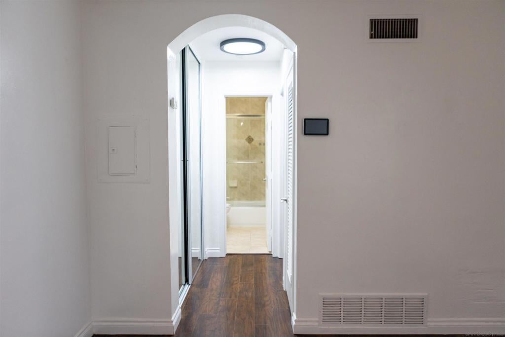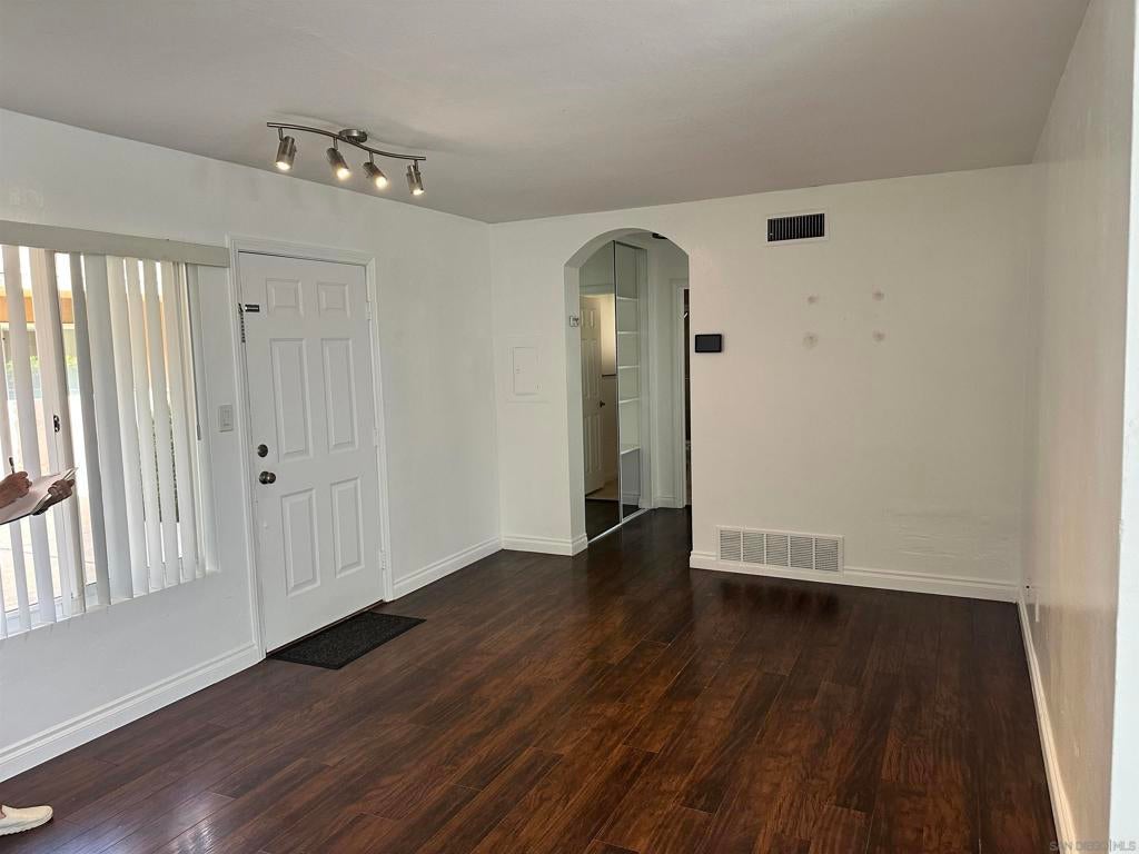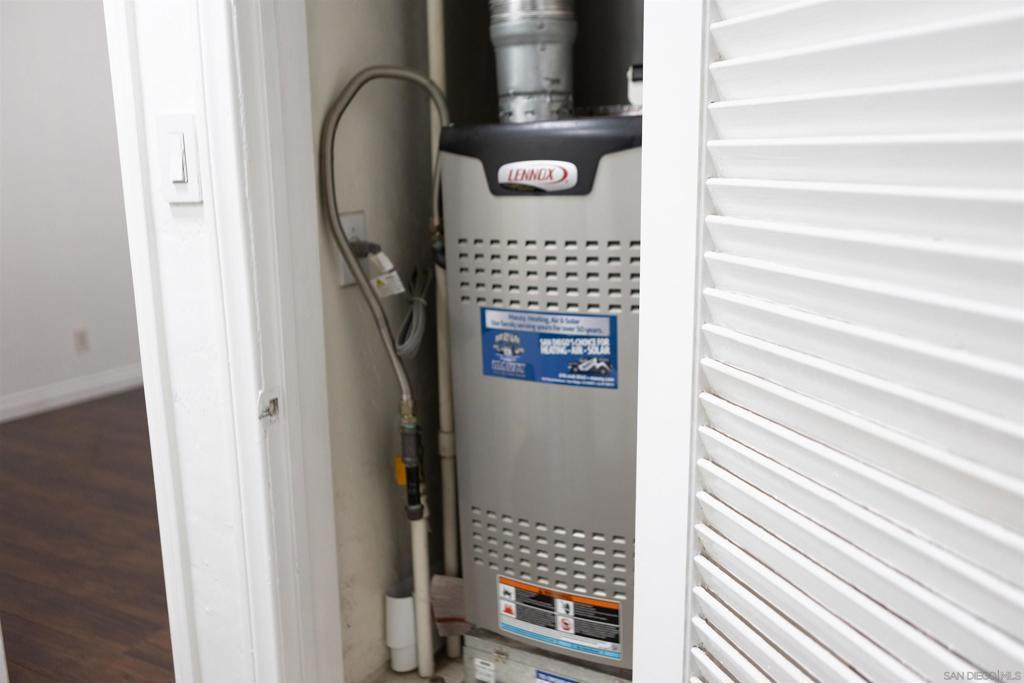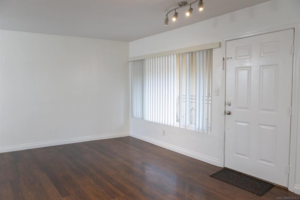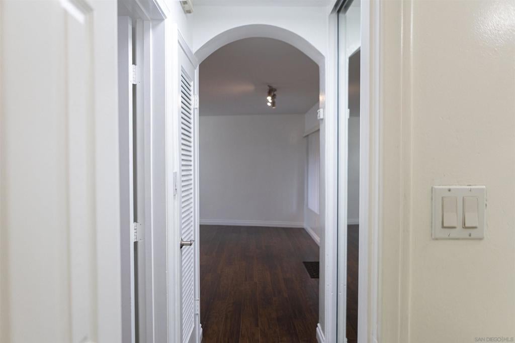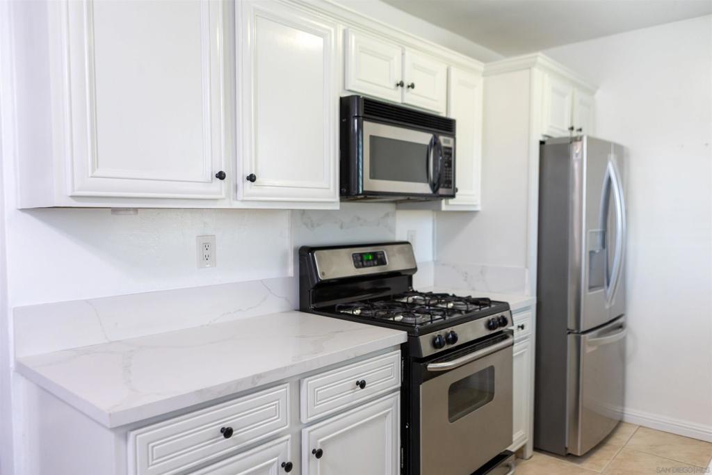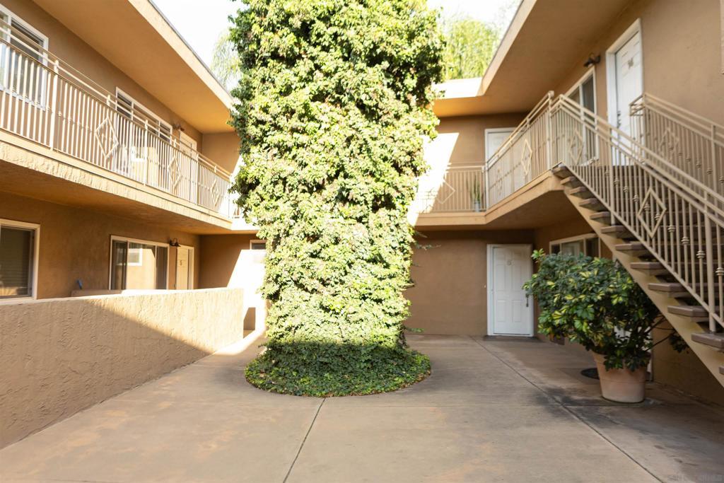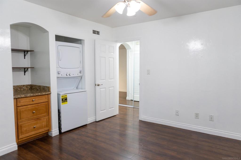 Beautiful ground-floor condo in a charming, small gated community near San Diego State University! FHA and VA approved, this bright and airy end unit is ideally situated at the end of a quiet cul-de-sac, offering both privacy and convenience. The open layout is filled with natural light from numerous windows, creating a warm and welcoming atmosphere. The updated kitchen features stainless steel appliances and modern finishes, perfect for everyday living and entertaining. Enjoy the convenience of an oversized stackable washer and dryer in-unit. The comfortable bedroom includes mirrored closet doors, and ceiling fans enhance airflow throughout the home. This well-maintained complex offers a sparkling community pool. Just minutes from shopping, dining, and freeway access, this move-in-ready condo combines comfort, style, and an unbeatable location!