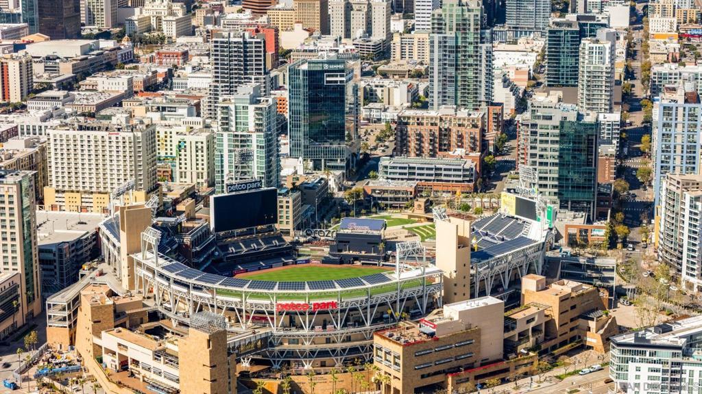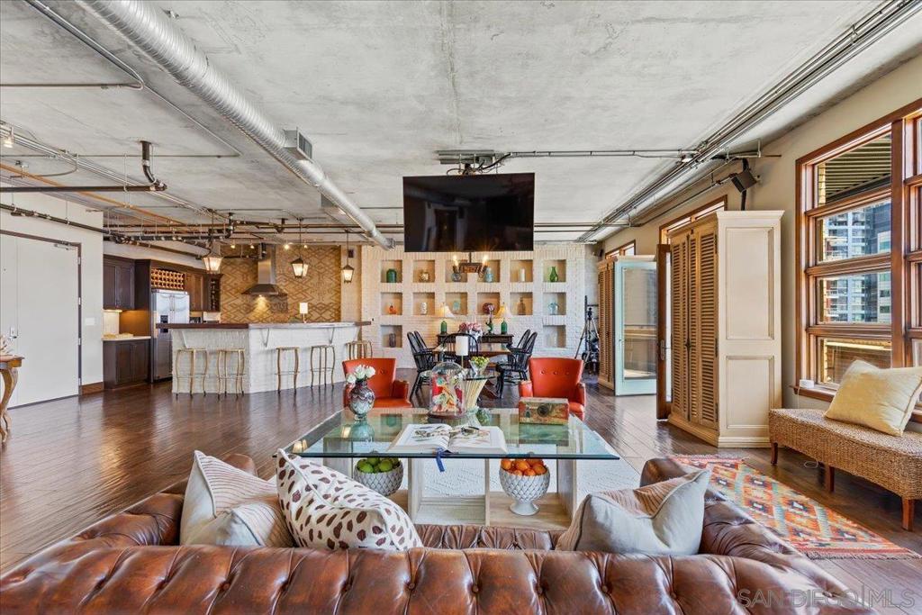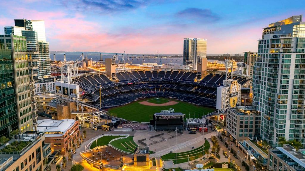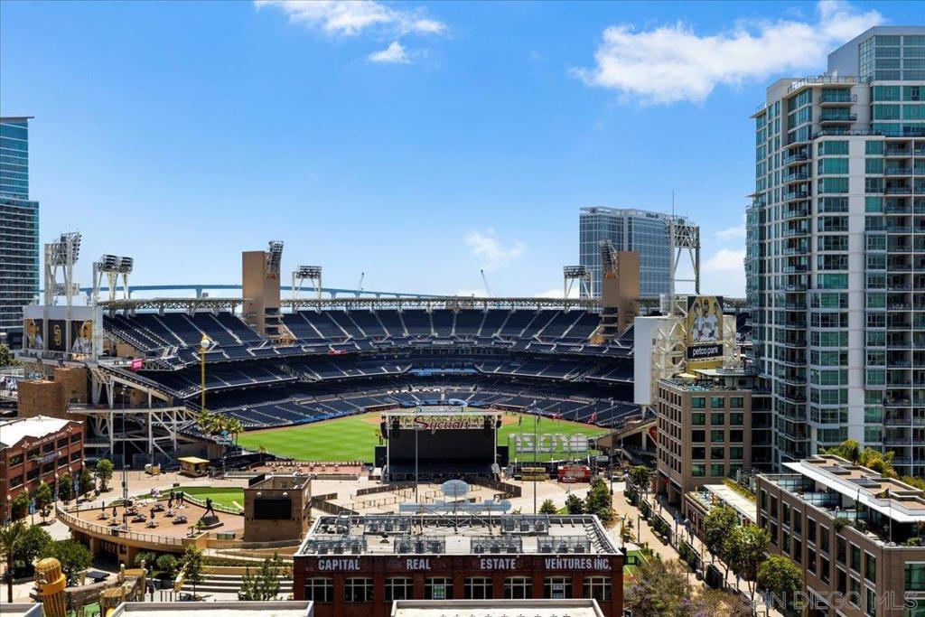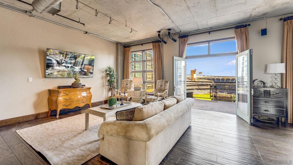 Dramatically positioned atop the cityscape, this exceptional penthouse offers an extraordinary vantage point directly overlooking home plate at Petco Park—an iconic perspective that few can claim. Encompassing 3,110 square feet, this one-of-a-kind residence is the largest in the prestigious Parkloft community, where contemporary sophistication converges with the raw elegance of loft-inspired architecture. Floor-to-ceiling windows and a sweeping 60-foot balcony unveil commanding 180-degree views of the San Diego skyline, the Coronado Bridge, and the Pacific horizon—each sunset more cinematic than the last. Inside, a grand 10-foot entry door opens to a voluminous interior defined by rich, dark-stained oak flooring and hand-applied Venetian plaster walls in warm terra cotta tones. The gourmet kitchen is both a design centerpiece and a culinary haven, featuring marble countertops, top-tier appliances, and a striking island ideal for gathering. A custom brick wall lends artistic character to the adjacent dining area, while the open-concept living space invites effortless entertaining against a backdrop of dramatic vistas. Ascend the sculptural spiral staircase—crafted with a woven metal balustrade—to the serene primary suite, complete with its own private entrance, balcony, sitting area, and a spa-inspired bath adorned with Italian terracotta tile, a soaking tub, luxuriously appointed glass shower and an expansive walk-in closet with European cabinetry. This rare and refined offering includes two ground-level, gated parking spaces—an exceptional convenience in the vibrant heart of downtown. Ideally situated within the coveted Parkloft community, residents are mere steps from the electric energy of Petco Park, the celebrated dining and nightlife of the Gaslamp Quarter, and the coastal allure of the Marina District. With effortless access to San Diego International Airport and the Santa Fe Depot, the city—and beyond—is always within easy reach. Parkloft elevates urban living with an array of premier amenities designed to enrich daily life. From the attentive concierge and serene, Zen-inspired lobby to the fully equipped fitness center and lushly landscaped courtyard ideal for relaxed gatherings, every detail is curated for both comfort and connection. Here, luxury meets lifestyle in its most sophisticated form—where modern design, urban convenience, and refined community living exist in seamless harmony. Furnishings Negotiable!