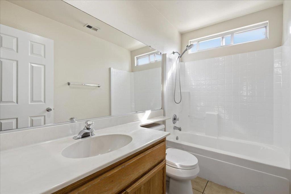 Situated in a private Cul de Sac, this move-in ready home featuring a welcoming living room with a cozy fireplace. This spacious residence offers 3 bedrooms and 2.5 bathrooms, including a large primary suite with an ensuite bathroom. The property also features low-maintenance front and backyard spaces, perfect for easy living and minimal upkeep. Leased solar. Inviting large park behind property with two dog parks. One for larger dogs and the other for small dogs, plus a Play area for fun family gatherings. In home laundry. Large Tangerine and Avocado trees in the backyard.