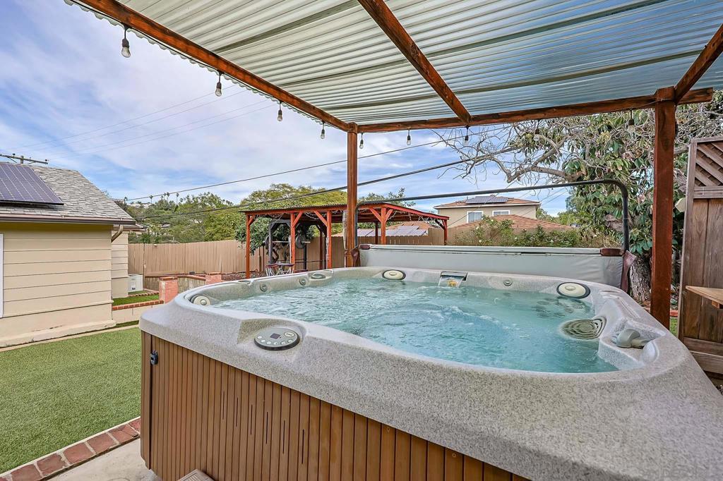 Walking distance to Collier Park and the shops, restaurants, and energy of downtown La Mesa — this 1945 Craftsman sits just over the border and gives you everything the neighborhood is known for, without the La Mesa premium. The backyard is the headline. Two covered patios, a wood-burning brick fireplace, a Jacuzzi hot tub with outdoor shower, and lush avocado and orange trees create an outdoor space that feels more like a private resort. Inside, original oak hardwood floors, crown molding, solid wood cabinetry, a wood-burning fireplace, and a large formal dining room honor the home's Craftsman character. The kitchen features granite countertops, stainless steel appliances, and a tankless water heater. The practical upgrades matter: 13 owned solar panels with EV charging, newer roof, dual-pane windows, finished two-car garage with epoxy floors, and an oversized driveway with RV or boat parking. The real upside is the opportunity. The space behind the garage offers a natural footprint for a detached ADU with its own private entrance — ideal for rental income or multigenerational living. The floorplan also supports conversion to a 3 bed / 2 bath without significantly impacting the yard.