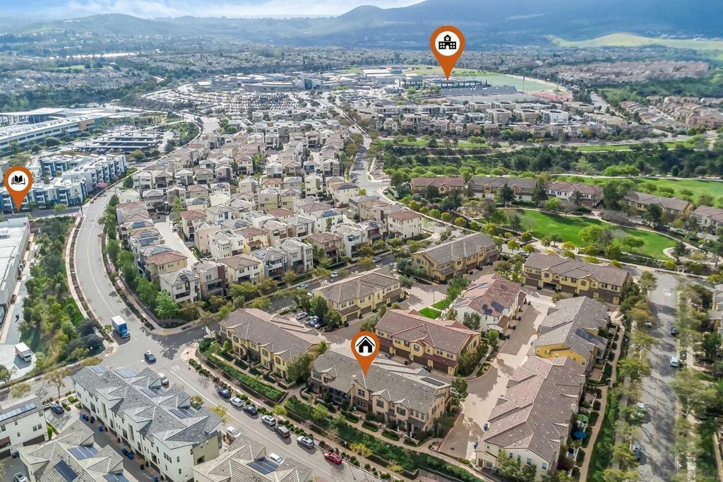 Welcome to this beautifully maintained townhome in the highly desirable Garretson at Del Sur community. This north-facing, two-story residence offers thoughtfully designed living space with an open floor plan filled with natural light and coastal hill views. Step inside to discover elegant wood flooring throughout the entire home, including upstairs, where the carpet was recently removed and replaced last year. The flooring flows seamlessly into a spacious great room and dining area, perfect for everyday living and entertaining. The well-appointed kitchen features stainless steel appliances, abundant cabinetry, and a cozy breakfast nook. Upstairs, you’ll find generously sized bedrooms, including a serene primary suite with a walk-in shower and limestone countertops. Large windows throughout the home create a bright and inviting atmosphere. Del Sur’s resort-style amenities elevate everyday living, enjoy solar-heated community pools, scenic walking trails, and neighborhood parks. Conveniently located within walking distance to top-rated Poway Unified schools, restaurants, and shopping centers, this home offers comfort, convenience, and the best of the Southern California lifestyle.
