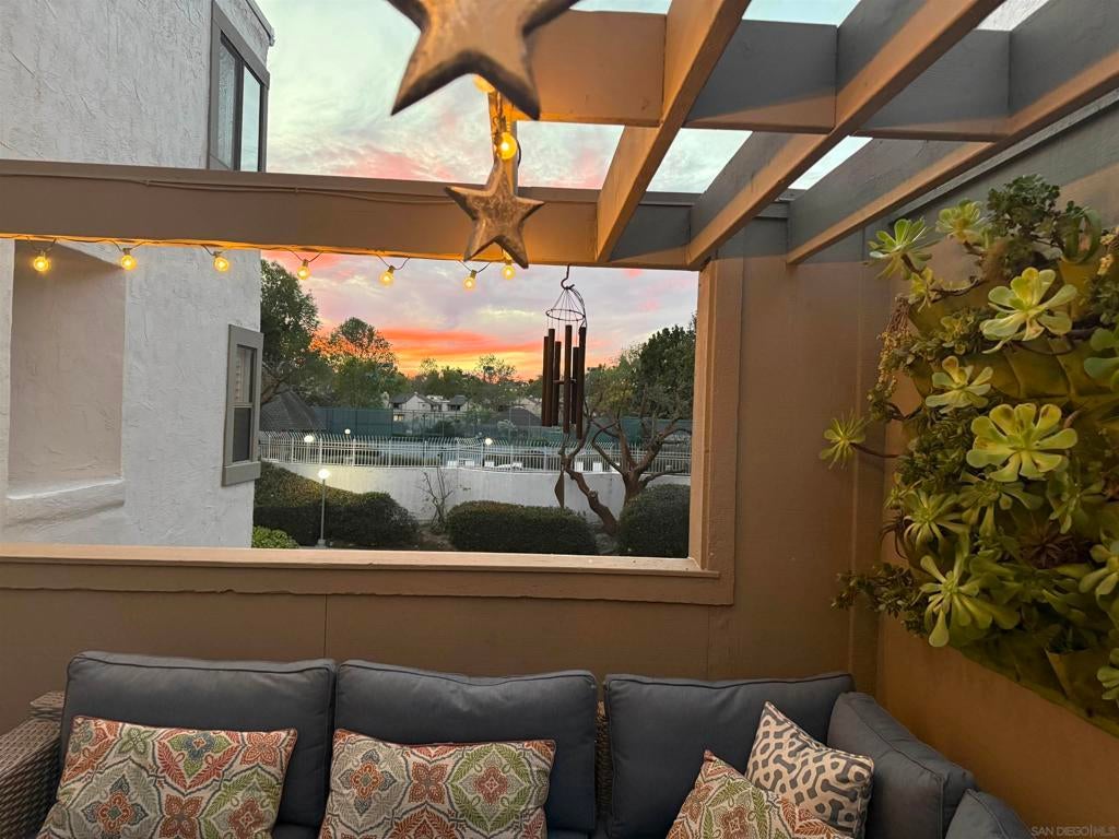 Welcome to this beautifully upgraded La Jolla townhome! Boasting open concept living with a custom designed kitchen including: heat resistant matte countertops, smart cafe appliances, cabinet face dishwasher, farmhouse sink with smart faucet and ample storage. The oversized deck off the kitchen brings the outside in making the unit live as a larger corner unit. Enjoy unobstructed western facing views perfect for watching the sunset or the family at the pool/tennis courts! Additional upgrades include: luxury vinyl with a heated floor system throughout the home, dual pane windows, upgraded front door, upgraded security front door, upgraded interior doors, upgraded garage door/motor, custom storage systems in all closets, custom built in entertainment storage system, drip system on back deck for plants, whole house water filter, and much more. Enjoy the amenities within the HOA and its convenient location just minutes from the community park, multiple shopping center's, and a short 10 minute drive to the beach. This is a must see!