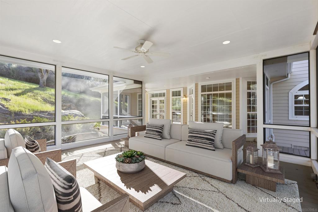 Escape to a private mountain sanctuary in Julian’s sought after Pine Hills community, where fresh air and star filled skies define everyday living. Set on nearly five acres just minutes from historic Julian, this exceptional estate offers peaceful seclusion with modern comfort. Built in 2003 with timeless Early American character, the home welcomes you along a long private driveway to a charming wraparound covered porch and grand light filled entry. Thoughtful exterior lighting creates a warm ambiance perfect for enjoying summer evenings outdoors. High ceilings, maple flooring, detailed moldings, and expansive windows create warm interiors that connect beautifully to the surrounding landscape. The spacious kitchen features a five burner gas range, walk in pantry, and large center island with secondary sink, opening to the inviting family room with wood burning fireplace and custom built ins. French doors lead to a screened California room and paver patio, creating seamless indoor outdoor living. All five bedrooms are private en-suites with walk in closets, including a main level guest suite. The primary retreat offers a sitting room, dual walk in closets, separate vanities, soaking tub, and Italian-style walk in shower. The property includes a well with 10,000 gallon holding tank, reverse osmosis filtration system, generator, FloLogic leak detection system, four outbuildings including a potter’s studio, and a three car garage. Close to William Heise County Park and minutes to Historic Julian shops and restaurants. Escape to a private mountain sanctuary in Julian’s sought-after Pine Hills community, where fresh air and star-filled skies define everyday living. Set on nearly five acres just minutes from historic Julian, this exceptional estate offers peaceful seclusion paired with modern comfort. Built in 2003 with timeless Early American character, the home welcomes you along a long private driveway to a charming wraparound covered porch and grand, light-filled entry. Thoughtful exterior lighting creates a warm ambiance, perfect for enjoying peaceful summer evenings outdoors. High ceilings, maple flooring, detailed moldings, and expansive windows create warm, inviting interiors that connect beautifully to the surrounding landscape. The spacious kitchen features a five burner gas range, walk in pantry, and large center island with secondary sink, opening seamlessly to the inviting family room with a wood burning fireplace and custom built ins. French doors lead to a large screened California room and paver patios, creating effortless indoor outdoor living ideal for entertaining or quiet relaxation. All five bedrooms are private en suites with walk in closets, including a convenient main level suite for guests. The primary retreat offers a private sitting room, dual walk in closets, separate vanities, soaking tub, and a beautiful Italian style walk in shower, along with tranquil views of the surrounding landscape. The property includes a private well with a 10,000 gallon holding tank, reverse osmosis filtration system, generator, and FloLogic leak detection system. Four outbuildings provide incredible versatility, including a charming potter’s studio with electricity and sink. Located near the scenic trails of William Heise County Park and just minutes from Historic Julian’s restaurants, shops, and small town charm, this exceptional property captures the very best of mountain living. A three car garage provides ample storage and the Gator is included. At night, the star filled skies are truly spectacular.