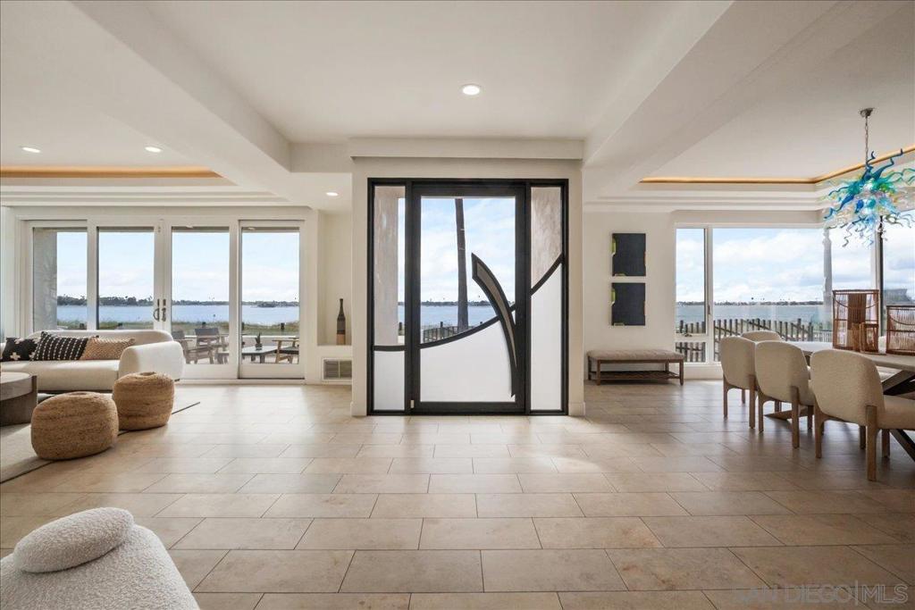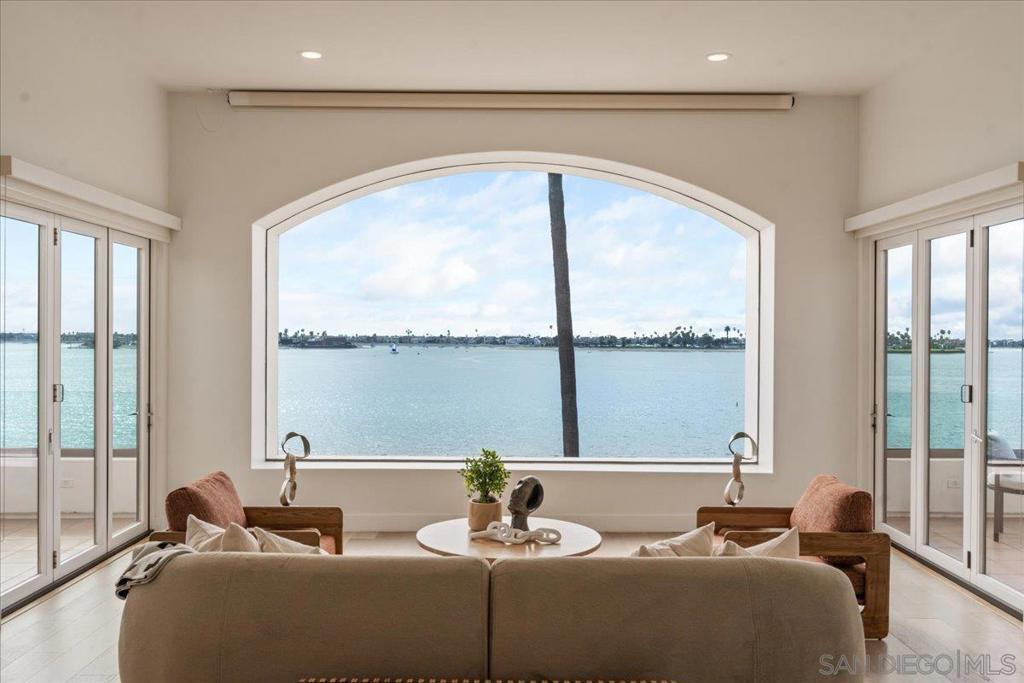 Welcome to your DREAM HOME on Riviera Drive, perfectly positioned on the front row of Sail Bay with unobstructed panoramic views stretching to the Pacific Ocean. Located in Pacific Beach’s highly sought-after Crown Point neighborhood and designed by renowned architect Paul Thoryk, this stunning waterfront residence offers true coastal luxury in a home that feels brand new! Thoughtfully designed to showcase its spectacular setting, the home features expansive walls of glass, open-concept living spaces, and seamless indoor-outdoor flow that flood the interiors with natural light while framing every room with shimmering bay views. Offering approximately 3,209 square feet, the home includes four bedrooms and three-and-a-half bathrooms, with an optional main-level primary suite. The chef’s kitchen is equipped with a Wolf stove, Monogram cooktop, a full-size Sub-Zero refrigerator, and an additional Sub-Zero refrigerator in the kitchen expansive island. Upstairs, a spacious media/family room with additional wet bar and floor-to-ceiling windows opens to two waterfront terraces, while secondary bedrooms each enjoy private outdoor access. The panoramic rooftop deck captures breathtaking sunrise-to-sunset views of the bay and ocean! Additional highlights include six patios, an oversized one-car garage, covered carport, and a gated driveway with parking for three additional vehicles. With direct access to the boardwalk and walkability to Pacific Beach’s premier dining, cafés, and coastal attractions, this is a rare opportunity to own a true architectural waterfront sanctuary! List of upgrades in the Documents section