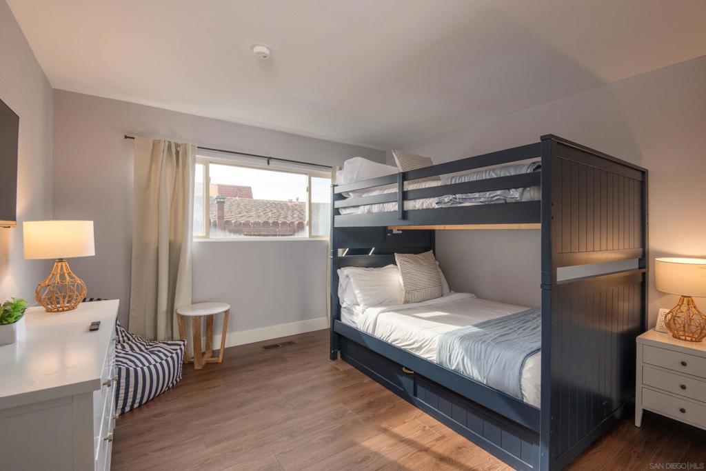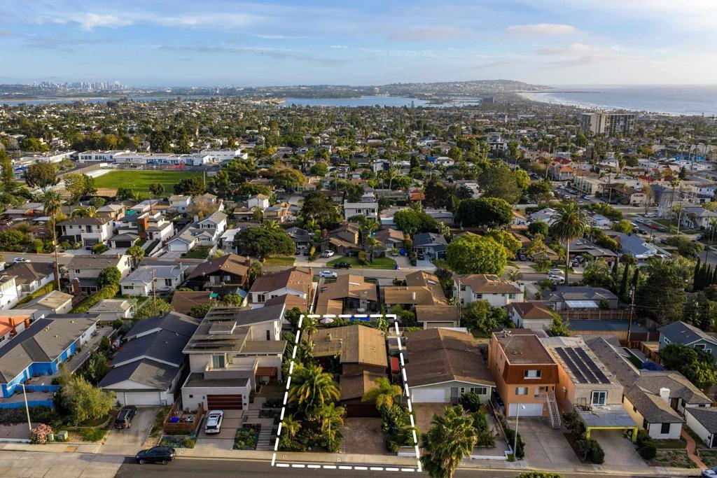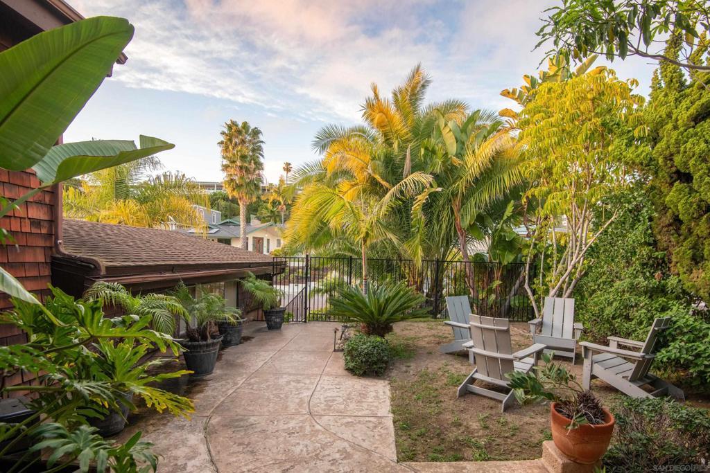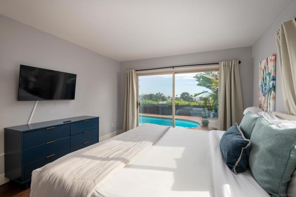 Tucked away in desirable North Pacific Beach, this beautifully remodeled coastal retreat masterfully blends touches of mid-century modern elements with relaxed island-inspired charm. The interior shines with durable LVP flooring, tongue-and-groove ceilings accented by bold exposed beams, crisp white shaker cabinetry, sleek quartz countertops, and eye-catching vibrant subway tile backsplashes. At the center, a striking statement fireplace elegantly divides the living and dining areas while serving as a cozy, inviting focal point. An extra-wide sliding glass door frames breathtaking views of the backyard oasis and floods the open-concept layout with natural light, creating seamless flow ideal for everyday living and effortless entertaining. The generous primary suite offers a spacious walk-in closet and direct backyard access, enhancing that coveted indoor-outdoor connection. Both bathrooms have been thoughtfully updated with modern floating vanities and contemporary finishes for a fresh, spa-like feel. Enveloped by lush palms and mature greenery, the property evokes a private Hawaiian getaway. The backyard features a sparkling pool and ocean views, the ultimate spot for sunset swims, al fresco dining, and weekend gatherings. A fenced front yard provides extra space perfect for pets, play, or a cozy fire pit, while the attached two-car garage and additional driveway parking deliver plenty of convenience. Just moments from Law Street beach, premier surf spot Tourmaline beach, cafes, restaurants and more, this slice of paradise is calling your name!