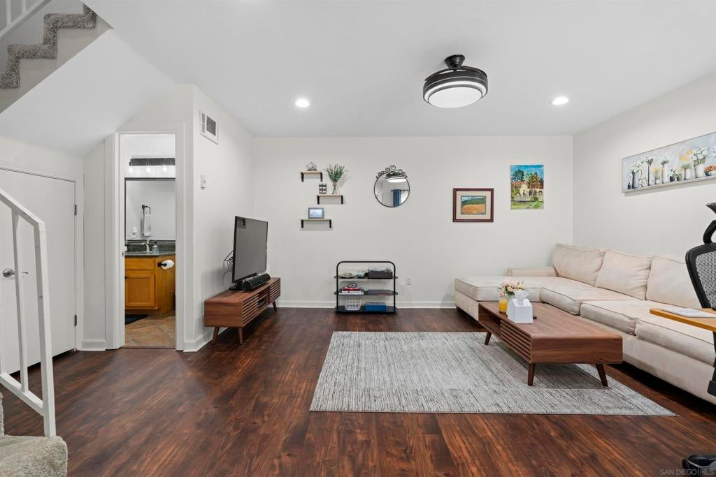 Why rent when you can own? Close to Chollas Lake & SDSU, this charming 2-story, 2BR/1.5BA townhome is nestled in gated Lake Park Villas. Both FHA and VA-approved, this delightful unit welcomes you with its warm & inviting atmosphere. Step into a meticulously maintained interior, featuring updated lighting fixtures, designer paint, luxury vinyl plank flooring, and recessed lighting. Each bedroom is generously sized & offers plenty of closet storage...plus, the breezes are wonderful! Enjoy easy access to community amenities, including a pool, landscaped green spaces, assigned parking, and convenient on-site laundry. With its easy access to freeways, shopping, and dining options, this is a wonderful blend of convenience and comfort at an exceptional value - come see!
