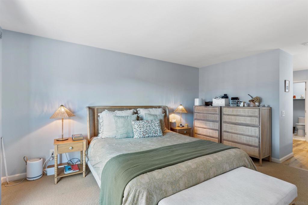 Nestled in a private, end-unit location in the highly sought-after Avenue of the Trees community. Surrounded by lush greenbelt & open space, the home lives like a single-level, with both primary & secondary bedrooms situated on the main floor. The upstairs loft with a WIC is an optional 3rd bedroom. The expansive living room showcases soaring vaulted ceilings, a cozy fireplace, abundant natural light, & seamless access to the patio. The updated interior features wide-plank luxury vinyl flooring, quartz countertops, stainless steel appliances, & modern lighting. The spacious primary suite includes a double vanity ensuite bath. Outdoors, enjoy a wraparound Trex deck enveloped by mature landscaping & peaceful nature views. With multiple seating areas across upper & lower deck spaces, plus a pre-plumbed gas line for a future firepit.. Additional upgrades include a powder-coated aluminum privacy fence and a recently updated roof with new underlayment & tiles. The owned solar system consistently offsets annual electricity costs & a recently installed high-efficiency Mitsubishi ducted heat pump system providing 3-zone heating & air conditioning. The full two-car garage offers ample storage, including overhead truss space, plus an additional dedicated parking space in front of the home. Residents enjoy HOA amenities including a pool, spa, & tennis courts, with a convenient walking path directly from the backyard to these features. Located West of El Camino Real, 1.5 miles from the beach, & quick access to Highways 78 and 5. Won't last.