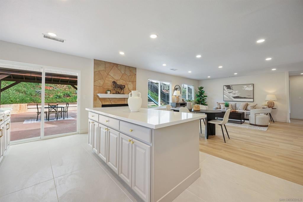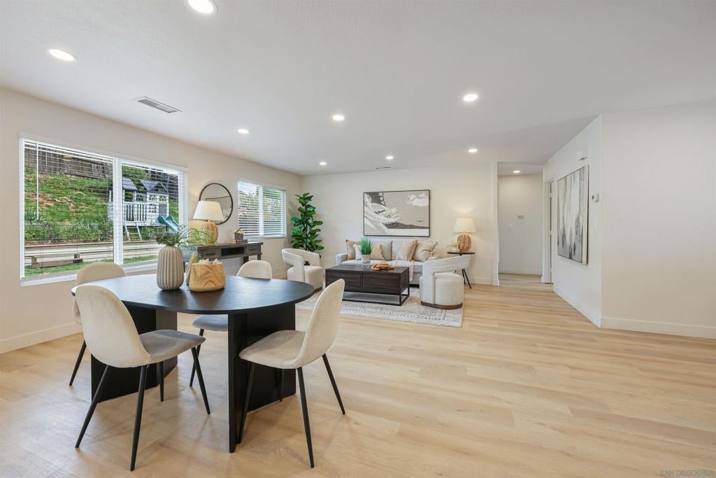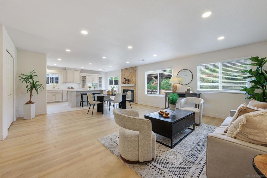 Located on a peaceful, low-traffic street near a cul-de-sac, 1544 Indian Summer Rd presents a thoughtfully renovated interior paired with inviting indoor–outdoor living. The home opens to a bright, open-concept living space where wide plank flooring, recessed lighting, and clean modern finishes create a warm and cohesive atmosphere. The living and dining areas flow naturally into the updated kitchen, which features light beige cabinetry, quartz countertops, stainless steel appliances, modern hardware, and a spacious center island designed for both everyday living and entertaining. The renovation was carefully executed with cohesive finishes and attention to detail throughout, creating a move-in ready space that feels both modern and comfortable. Large windows and sliding doors bring in abundant natural light while connecting the interior to the backyard. Outside, a covered pavilion and expansive patio create an inviting setting for gatherings and outdoor dining. The terraced hillside provides a private backyard setting while adding depth and character to the landscape.