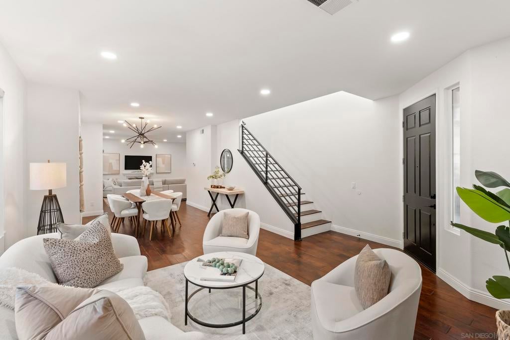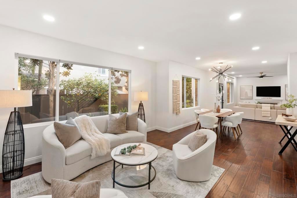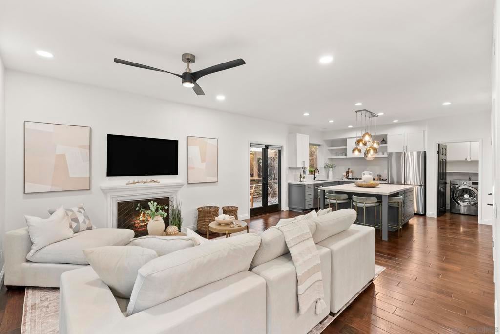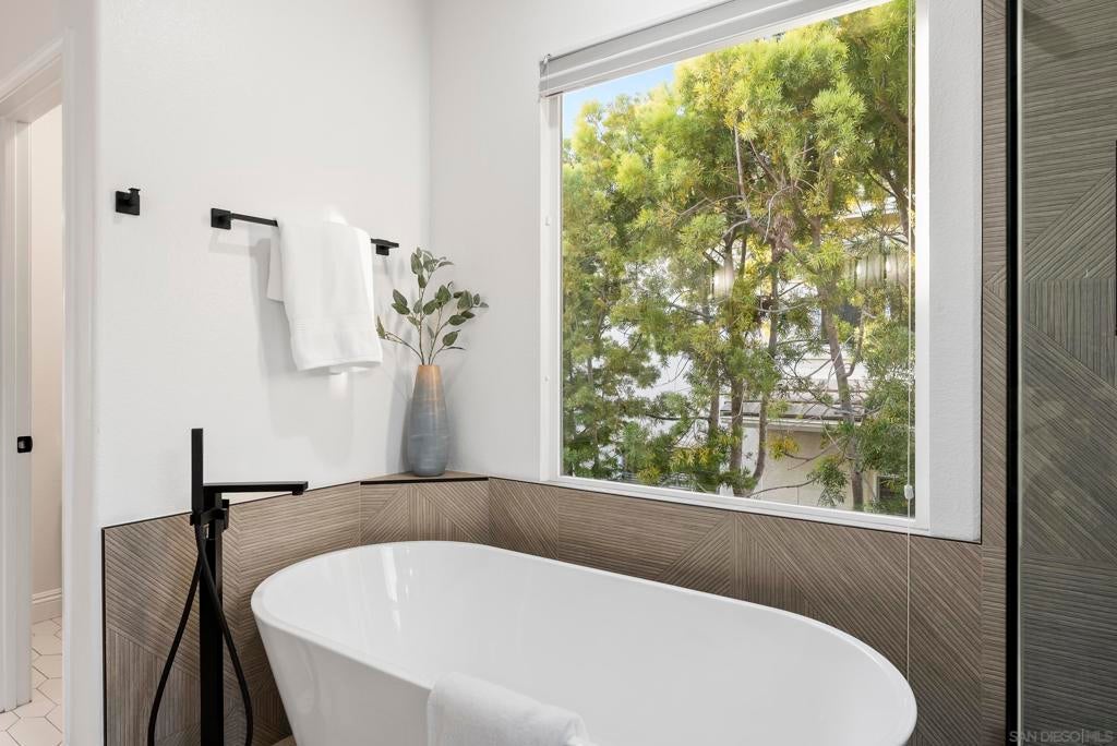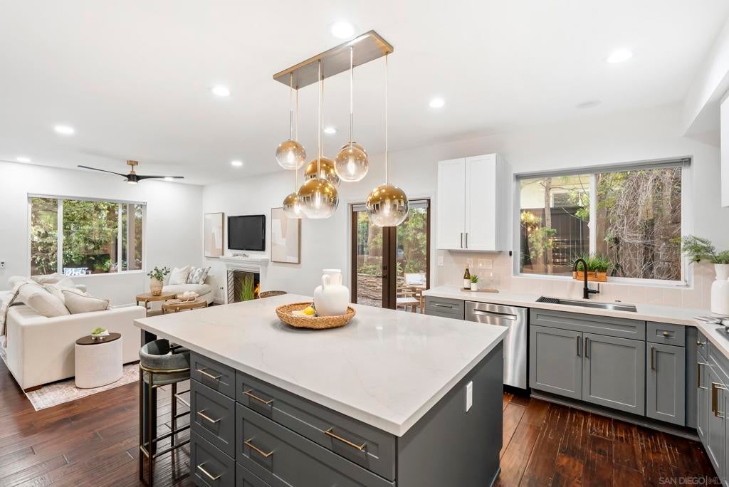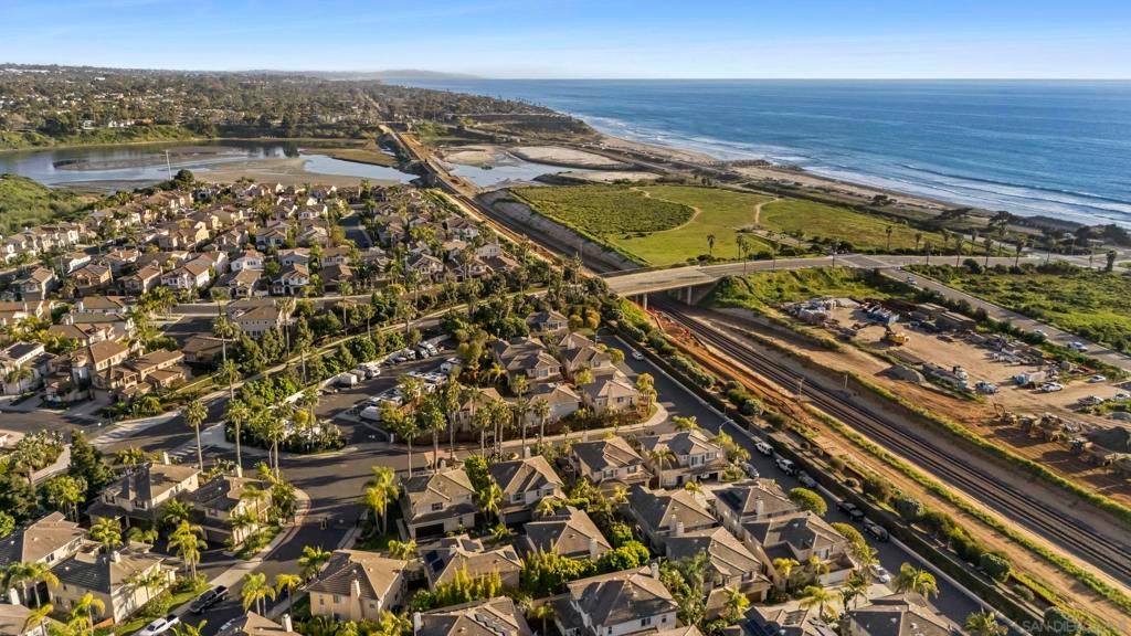 Casual Elegance & Coastal Living… Reimagined with a fresh, sophisticated perspective, this beautifully and extensively remodeled home offers chic coastal living in the coveted Vistamar neighborhood of San Pacifico. Thoughtfully redesigned with a refined palette and elevated finishes, the home blends modern style with relaxed California elegance. The light-filled floor plan features expansive living spaces, a kitchen designed for gathering with an oversized island, and seamless indoor-outdoor flow to private patios and gardens ideal for entertaining or unwinding. The relaxed family room centers around an inviting fireplace, creating a warm atmosphere space just off the kitchen. Upstairs, the serene primary suite offers a spa-inspired bath, walk-in closet, and peek ocean views. A versatile west-facing loft captures sunset light and is perfect for a home office, gym, or creative studio. Two additional bedrooms, a loft and a spacious bath complete the second floor. Just blocks from the ocean and lagoon, residents of San Pacifico enjoy resort-style amenities including a pool, spa, tennis courts, volleyball, and scenic trails. Perfectly positioned near the vibrant villages of Carlsbad and Leucadia, this exceptional home offers effortless access to beaches, dining, shopping, and year-round coastal living.