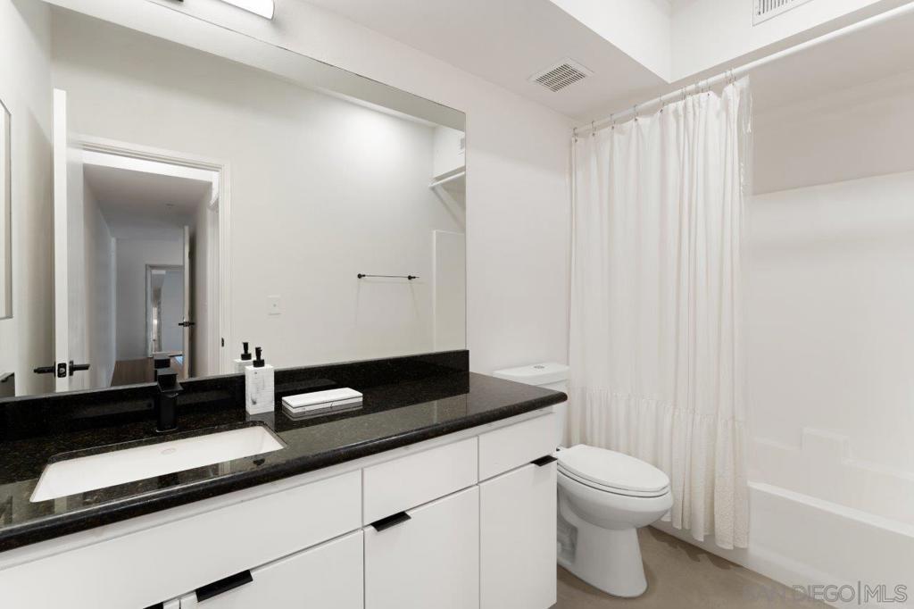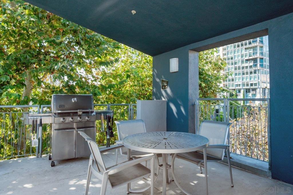 PENTHOUSE PERFECTION! This phenomenal top-floor Atria residence is a rare find, offering the ultimate in Downtown living with an open two-story layout, soaring ceilings, and a private patio tailor-made for a serene outdoor retreat above the city. The gourmet kitchen impresses with rich dark granite countertops and backsplash, stainless appliances, sleek white cabinetry, and warm wood open shelving for a perfectly curated mix of style and function. The polished concrete floors and inviting living area set a sophisticated tone. Both primary suites offer spacious walk-in closets while the spa-inspired bathrooms feature dark granite counters, white cabinetry, and matte black fixtures throughout. Additional highlights include a powder room, in-unit washer/dryer, and two dedicated parking spaces. Nestled in the heart of the Marina District, you'll enjoy effortless access to Seaport Village, the Embarcadero, Petco Park, and the vibrant Gaslamp District. Don’t miss this turnkey opportunity to own a one-of-a-kind retreat in Downtown San Diego! Residents of Atria enjoy the convenience of on-site management, fitness center, media room, and a rooftop deck complete with barbecue grills and downtown views. Located just steps from Ralphs grocery store, trendy coffee shops, a variety of restaurants, Seaport Village, and the scenic San Diego Bay, Atria offers the perfect blend of urban living and coastal charm.