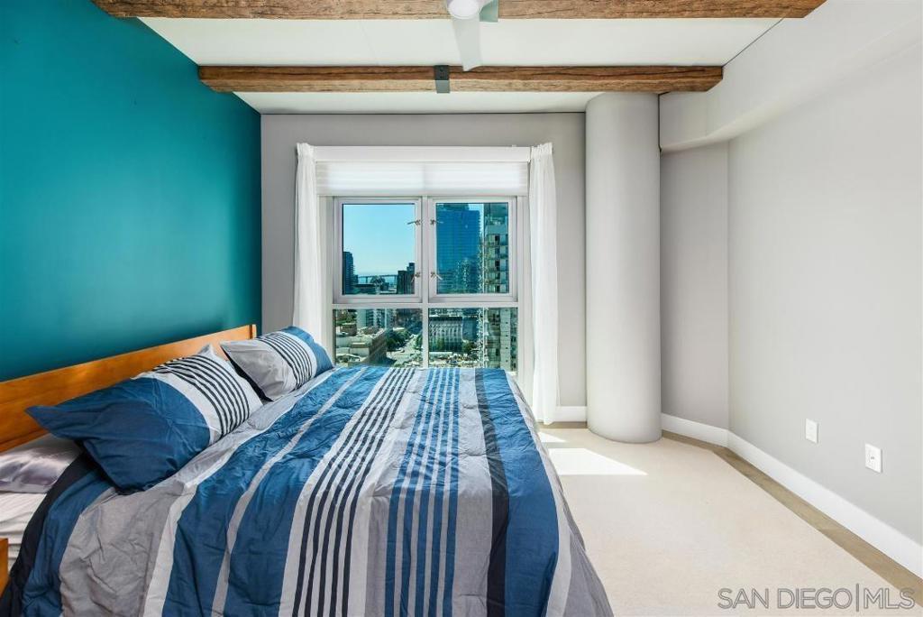 Turn key, stunning condo w/Panoramic views of bay, bridge, city, & mountains from every room! Expansive open concept, 10ft beam ceilings & floor to ceiling windows w/ custom electronic shades. Professionally decorated & completely remodeled to perfection w/high end finishes THROUGHOUT! Chefs dream kitchen complete with a complete Thermador appliance suite, wine fridge, copper trough sink & marble countertops. Custom designed his & hers luxury closets, wood floors & custom lighting. Chandelier in living room & 2nd bedroom/office wall system, both from Restoration Hardware will convey. Assigned storage unit & parking space. Steps to restaurants, Balboa Park, Tweat Street Park, Little Italy, Bankers Hill, Hillcrest & 10 minute drive to the airport. *PARKING SPACE IS ON P2 SPACE #27 *STORAGE SPACE IS ON P3, STORAGE ROOM 10, ROOM 3 NEXT TO PARKING SPACE 40.