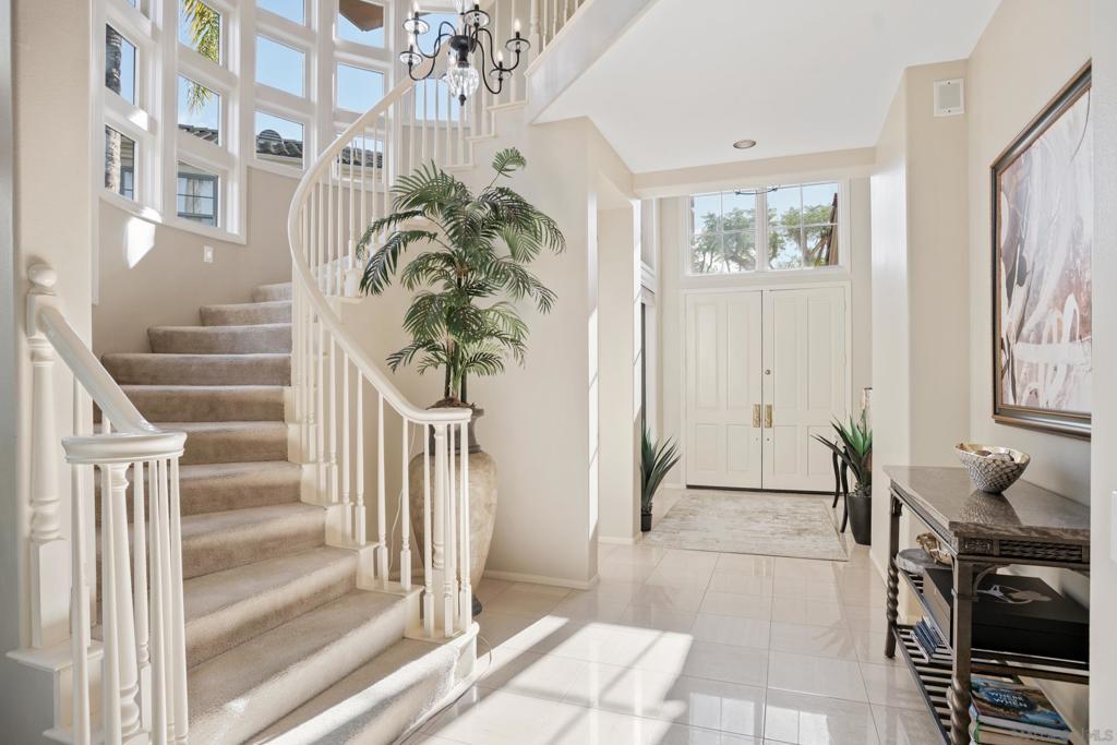 This stunning home in the prestigious Pavona community of Aviara features soaring ceilings, refined detailing, and expansive walls of glass that fill the home with natural light and frame lush garden views. As the largest model in Pavona, it offers a spacious and highly desirable floor plan rarely available in this sought-after enclave. The fully updated chef’s kitchen showcases premium appliances, custom cabinetry, and elegant finishes designed for both style and function. All bathrooms have been beautifully remodeled with modern, spa-inspired materials, creating a cohesive and elevated aesthetic throughout the home. Offering 4 bedrooms and 3.5 bathrooms, the layout balances comfort and sophistication. Families will love the Jack-n-Jill upstairs. Three fireplaces add warmth and architectural character to the living room, family room, and primary suite. The expansive primary retreat includes a generous alcove—ideal for a private sitting lounge, executive office, or fitness space—along with a beautifully appointed bath and abundant closet space. Seamless indoor-outdoor flow enhances both everyday living and effortless entertaining, with inviting outdoor spaces that extend the home’s livability year-round. The three-car garage provides ample room for vehicles, storage, and recreational gear. Located just moments from the scenic trails and coastal beauty of Batiquitos Lagoon, this exceptional home combines scale, thoughtful updates, and timeless design in one of North County’s most desirable communities.