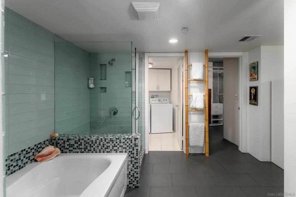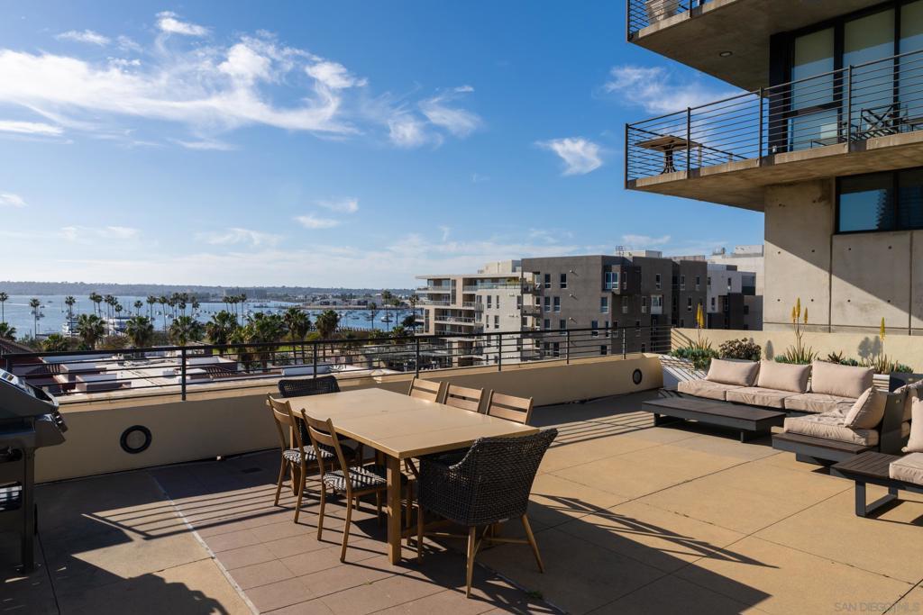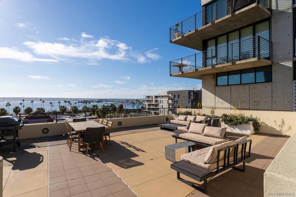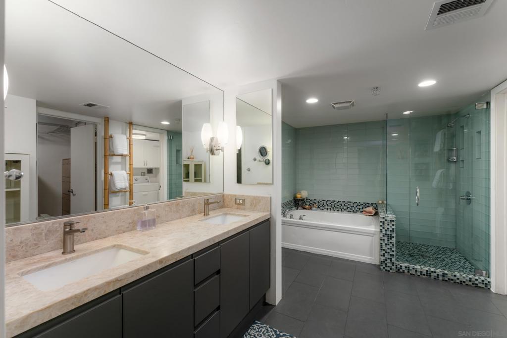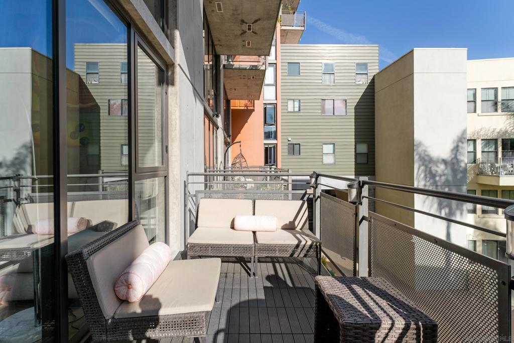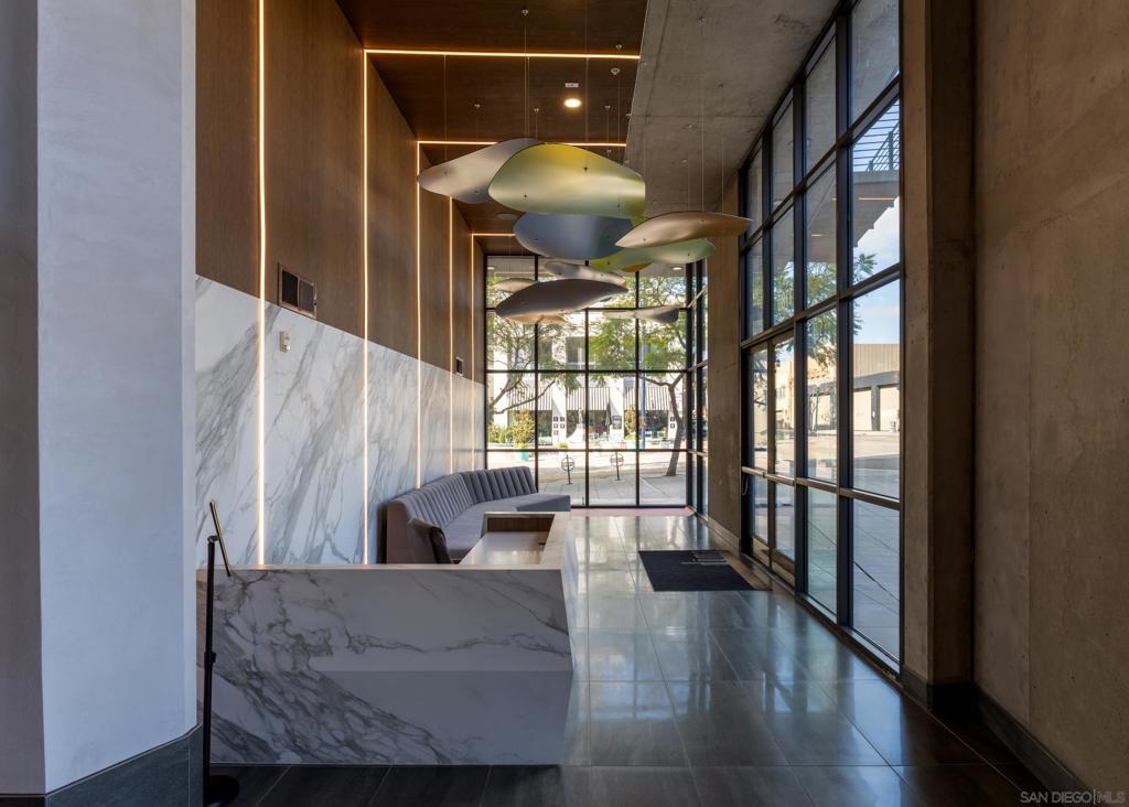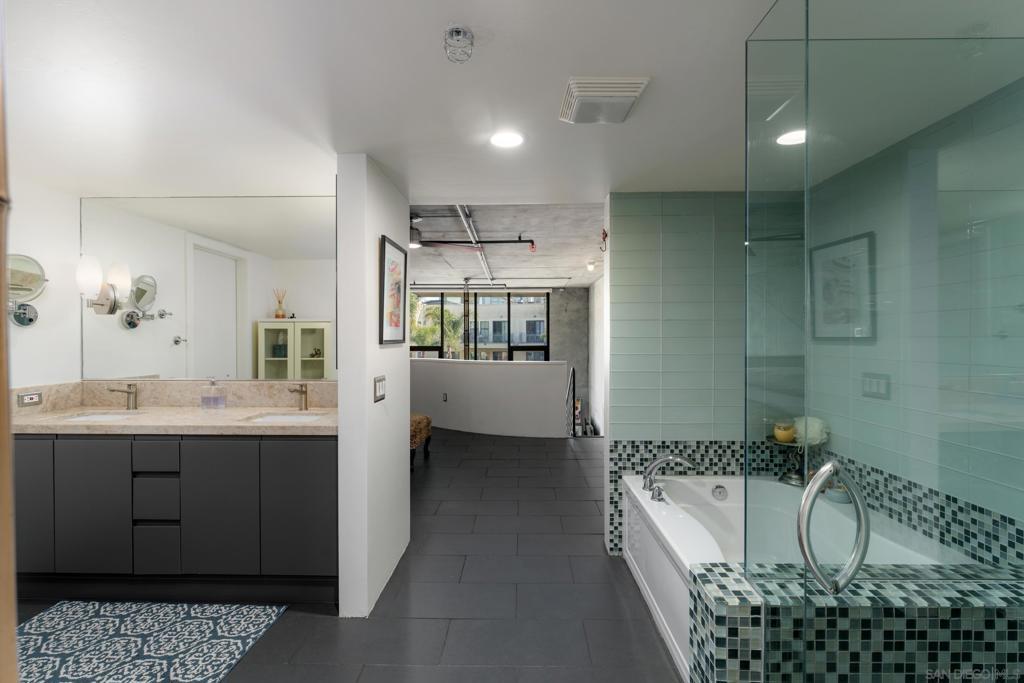 Architectural loft-style residence in the heart of Little Italy at the highly desirable Doma building. This beautifully renovated home offers approximately 1,133 sq ft of open living space with soaring ceilings, exposed concrete elements, and dramatic double-height windows that fill the home with natural light. Extensively renovated in 2025, the chef’s kitchen features custom cabinetry with soft-close drawers, high-end quartzite and granite countertops, porcelain Soho-style brick backsplash, deep workstation sink with accessories, wine refrigerator, and new French-door gas range with stainless hood. Dimmable under-cabinet LED lighting and live-edge wood shelving add warmth to the modern design. Porcelain plank flooring runs throughout the main level. The open loft layout connects the kitchen, dining, and living areas and opens to a private tiled patio ideal for outdoor dining or BBQ cooking. The home is positioned on the quiet south-facing courtyard side of the building, providing excellent natural light. Upstairs features a spacious primary suite with walk-in closet and renovated bathroom including new vanity, lighted mirror, and upgraded fixtures. Additional highlights include motorized window shades, smart keypad entry, water detection system, full laundry room, oversized parking space that can accommodate two vehicles, and large storage unit near the elevator. Doma residents enjoy a fitness center, bicycle storage, and rooftop deck with sweeping San Diego Bay views, perfect for entertaining or watching the Fourth of July fireworks. Minutes from Little Italy’s restaurant Welcome to Residence 310 at Doma, an architectural loft residence located in the heart of San Diego’s vibrant Little Italy neighborhood. Offering approximately 1,133 square feet, this home blends modern design, thoughtful upgrades, and the energy of urban coastal living. The residence was extensively renovated in 2025, transforming the kitchen into a true centerpiece of the home. Designed for both style and functionality, the kitchen features custom cabinetry with soft-close and sensor-lighted drawers and hidden utility storage, premium quartzite and granite countertops, a porcelain Soho-style brick backsplash, and a large deep workstation sink complete with cutting board and drying rack accessories. A French-door gas oven/range, stainless steel hood, wine refrigerator, and dimmable under-cabinet LED lighting complete the space. Live-edge wood shelving crafted from locally sourced San Diego wood adds warmth and character to the contemporary design. The main living area showcases the architectural character that makes Doma lofts so desirable, including exposed concrete ceilings, expansive windows, and an open loft layout that creates a bright and spacious feel. Porcelain plank flooring throughout the main level offers the look of natural wood with modern durability. Large double-height windows bring in natural sunlight throughout the day thanks to the unit’s quiet south-facing courtyard exposure. A private tiled patio provides a comfortable outdoor retreat and supports BBQ cooking, making it ideal for relaxing or entertaining. Upstairs, the lofted primary suite features a large walk-in closet with built-in shoe storage and modular shelving along with a beautifully upgraded bathroom. The bathroom includes a new vanity with matching countertop, lighted vanity mirror, upgraded faucets, Toto Drake ADA-height toilet, and bidet-ready outlets. In-floor heated tiles in upstairs bathroom are present and just need to be hooked up. Additional modern features throughout the home include motorized programmable window shades, SwitchBot smart system integration, keypad entry lock, multiple water detection devices connected to a single app, and fire sprinkler guards. The home also includes a full laundry room with dryer safety timer. Practical conveniences include a large private storage unit near the elevator with installed shelving and automatic lighting, as well as...