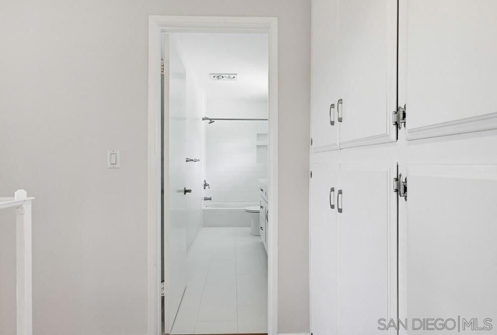 Nestled on a quiet, low-traffic street with lush tropical landscaping, this stunning residence offers peace and privacy in one of San Diego’s most beloved and established communities. Step through the dramatic dual-entry front doors and you’re immediately greeted by sweeping, panoramic views through wall-to-wall glass that flood the main level with natural light. Step outside into the beautifully maintained, spacious yard, perfect for relaxing or entertaining. The renovated kitchen is designed for everyday living and gatherings, featuring a center island, abundant cabinetry, and a dedicated dining area just steps away. A convenient large downstairs bedroom includes dual mirrored closets and an updated bathroom with marble shower and flooring. Sliding glass doors open directly to the backyard, creating a seamless indoor-outdoor flow. Upstairs, 3 additional bedrooms provide comfortable accommodations for family, guests, or a home office. The layout offers flexibility and privacy, with ample natural light and storage space throughout. Additional highlights include new central air conditioning and heating, wood floors, refrigerator, washer and dryer, an oversized attached two-car garage, and a built-in workbench. Ideally located, this home is a short walk to Mission Trails Regional Park, the Allied Gardens Recreation Center and pool, and top-rated neighborhood schools. This home offers the perfect balance of comfort, convenience, and the best of San Diego living.