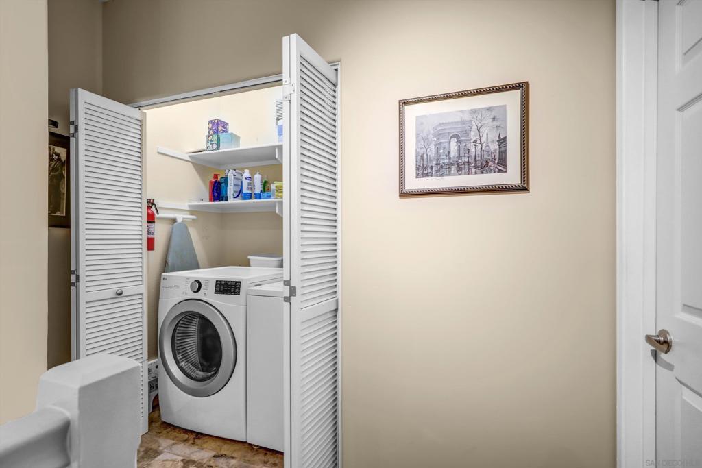 End Corner 3 BR/ 2.5 BA Townhouse with 2 Car Garage! Over 1,360 square feet of living space! Crown Molding on the entire first floor. Complete new kitchen featuring refinished cabinets, Travertine floors, granite counter tops and counter area with Brazilian site inlays, SS sink with touch control faucet. The entire home has recently skip troweled and freshly painted walls. Hardwood Floors in the dining and living room and all bedrooms with custom baseboards. LED lighting throughout. Whole House filtration system. Main Bath features a Custom walk-in shower with rain bonnet, shower heard and wand, Grohe hardware, porcelain tile floor and refinished cabinets, custom concrete scoop sink, with brushed nickel hardware. Lighted shower area and lighting behind custom mirrors and a new toilet. Guest bath features Porcelain flooring, refinished cabinet, trough concrete sink and brushed nickel hardware. Half bath features a new toilet, travertine tile floor, custom concrete trough sink with brushed nickel hardware. The ample sized private patio features a new 4” concrete reinforced with rebar, stamped and color coated, a timed irrigation system and a new fence as of 2025. Also included with this amazing home are smart home features such as a Nest camera and keyless locks for the front door and app or keyless entry for the garage. Garage also feature custom flooring and cabinetry. Laundry room is located upstairs for added convenience! Located in Stonecrest Village, which is minutes away from downtown San Diego, the beaches, Mission Valley shops and restaurants. Lots of light from the oversized windows. Includes membership to a state of the art resort like clubhouse featuring private reception facility, junior Olympic pool, spa, lighted tennis courts, tot-lot, private park, picnic areas, full gym, media room with library, 2nd pool facility also with spa, greenbelts and trails for walking, jogging, biking and much, much more.