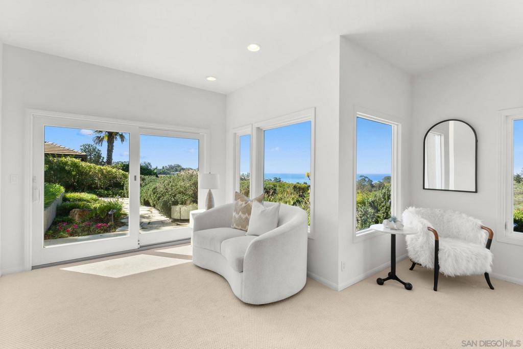 Gorgeous ocean and sunset views and sprawling, convenient one-level ease are the hallmarks of this immaculte residence in a superb, friendly Muirlands West enclave. On a large lot with picturesque panoramic blue sea, sunset, and hillside views and superb access to all sides of Mt Soledad near fine La Jolla schools and within two miles to locals' treasure, WindanSea Beach, this home offers a thoughtful floor plan and beautifully landscaped grounds with a wonderful, expansive outdoor patio ready for welcoming your family and friends. Luxurious and elegant interiors offer bright windows and doors for seamless indoor-outdoor living and enjoyment of the spectacular outdoor environment.