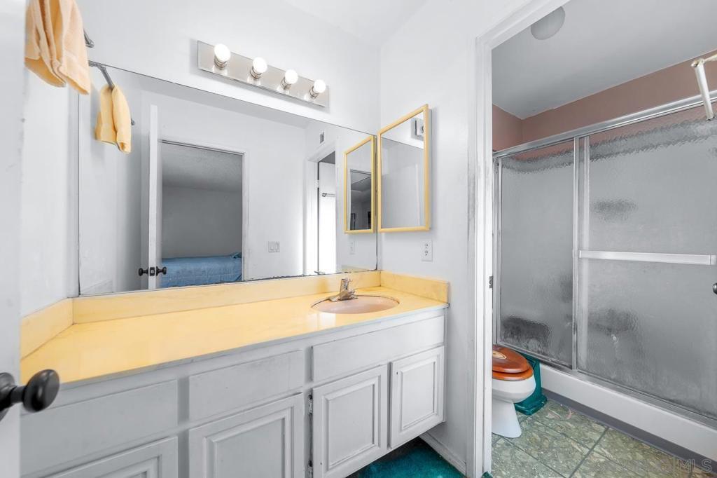 HUGE, FLAT, USABLE LOT with plenty of space to create. This two-story, three-bedroom, 2.5 bath home sits on a quiet cul de sac in desirable and centrally located University City. Stepping through the double doors and onto the tile entry, there is a step-down living with vaulted ceilings and crescent-shaped fireplace with attached dining area. Walking though the galley kitchen, there is a large family room with wet bar and two sliders to the backyard. All nicely-sized rooms have abundant natural light. The large backyard has an in-ground pool with plenty of space for entertaining...pool party, family barbecues, dining al fresco, or relaxing under San Diego's year-round sun.