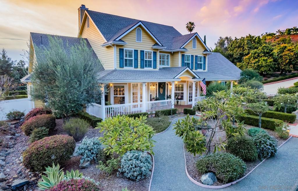 Tucked into the sun-drenched foothills of Vista, this private hillside estate is a quiet celebration of space, beauty, and intention. The 3,624-square-foot main residence unfolds with ease, offering gracious interiors designed for gathering, retreat, and everyday living. Nearby, a charming 594-square-foot guest house gazes out over a working vineyard, where sunset skies spill across the horizon and evenings linger on the front porch. Outdoors, the experience is immersive and abundant. A saltwater pool and spa, framed by a cascading waterfall and grotto, anchor the grounds, while a generous patio sets the stage for long afternoons and candlelit evenings beneath the stars. The nearly 1.5-acre property is a living orchard, home to mature grapevines and a remarkable collection of exotic and citrus fruit trees, including century-old mango, avocado, cherimoya, apple, nectarine, apricot, pomegranate, passion fruit, and kiwi, offering a landscape that evolves with the seasons. Here, life moves at a slower, more intentional pace. Harvest fruit from your own orchard, bottle your own wine, wander the vineyard rows, and savor a lifestyle shaped by abundance, privacy, and natural beauty. With amenities including garages for four cars, generous additional parking, owned solar and space to welcome guests near and far, welcome home.