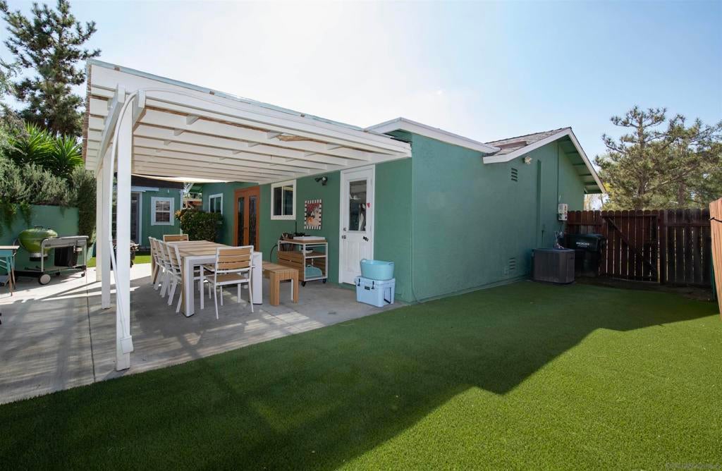 This San Marcos residence masterfully "brings the outside in," featuring a bright, open interior illuminated by a skylight and solar tube lighting and a detached mini casita. The heart of the home is a stylish kitchen equipped with a custom stone bar, quartz countertops, a colorful mosaic backsplash, soft-close cabinetry, a double pantry, and stainless steel appliances, all set upon elegant travertine tile floors. Seamlessly transition to the outdoors through wrought iron and glass double doors to a private backyard. This meticulously maintained property offers significant value with an updated bathroom, as well as new stucco, exterior paint, and energy-efficient windows all less than a year old.