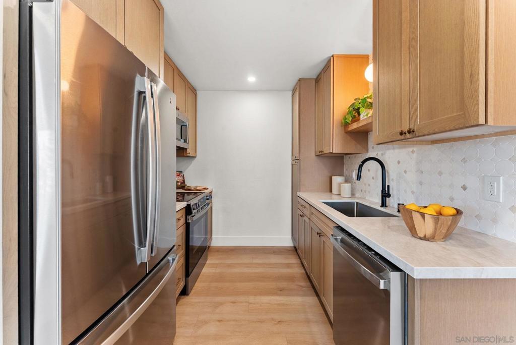 Dwell West Homes proudly presents Unit 3 at 1278 Pacific Beach Drive — a turnkey coastal condo just steps from Mission Bay and Fanuel Street Park. Located in a well-maintained gated complex, residents enjoy a shared rooftop deck with bay breezes and sunset views, along with the convenience of elevator access. The unit has been fully renovated with a clean, modern design and thoughtful layout. Highlights include a refreshed kitchen with contemporary finishes, updated bathrooms, new flooring throughout, and in-unit laundry hookups for everyday convenience. The home is move-in ready and ideal for low-maintenance coastal living whether you’re looking for a primary residence, second home, or investment (HOA does not currently prohibit short term rentals). Parking is a standout feature, offering a private garage plus an additional parking space — a rare find this close to the bay. Ideally situated within walking distance to Mission Bay, the beach, parks, dining, and shopping, this property delivers an exceptional blend of lifestyle, location, and convenience.