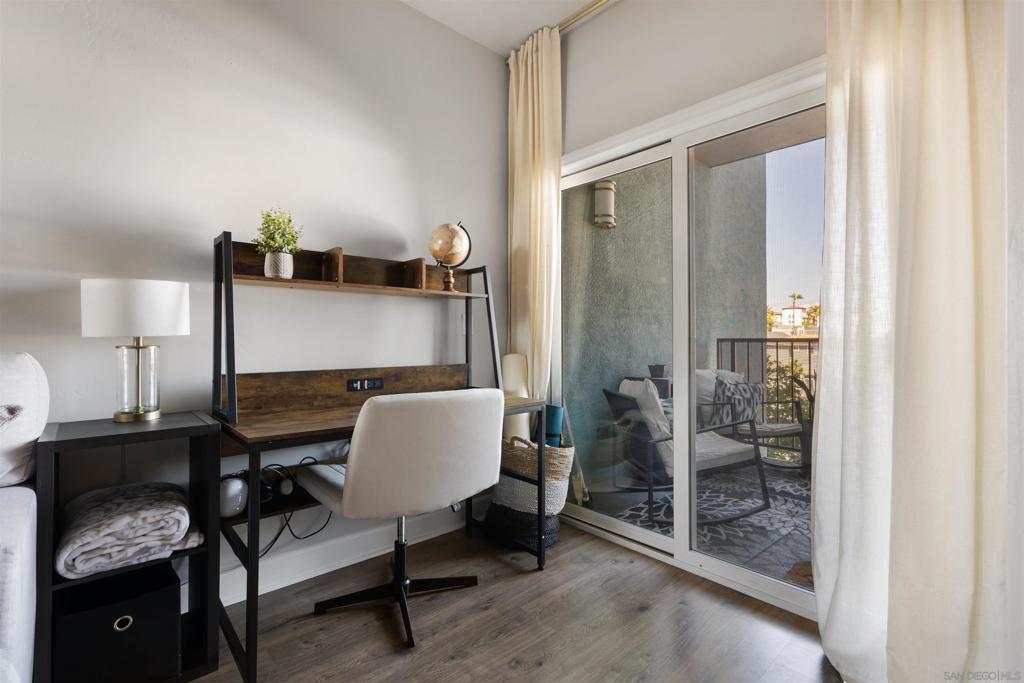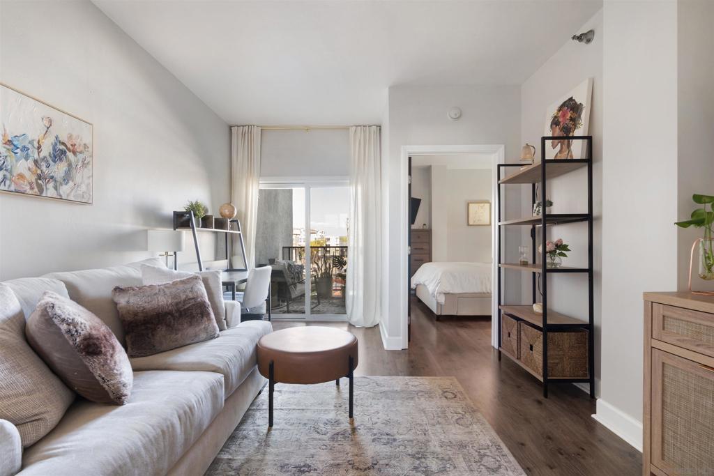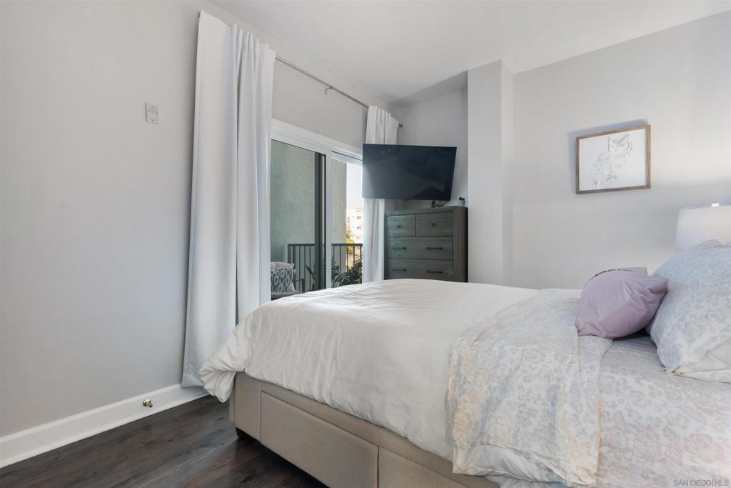 North Park condo with private covered balcony + secure parking + rooftop deck, move-in-ready 1 bed / 1 bath condo featuring a spacious, well-designed layout and an open living area perfect for relaxing or entertaining. Step through sliding doors to your private covered balcony—ideal for morning coffee, fresh air, and sunset vibes. The bedroom includes a large walk-in closet, offering tons of storage and flexibility—think dressing area, extra organization, or even a compact work-from-home nook. Enjoy unbeatable walkability to North Park’s best dining, cafes, shops, and nightlife, plus a rooftop deck for lounging and gathering. Includes 1 secure underground parking space