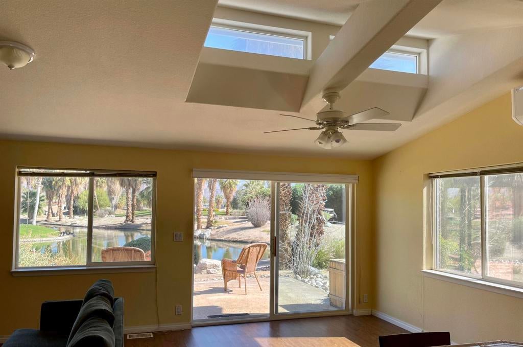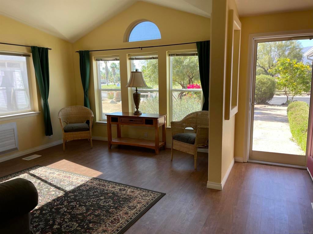 Lakefront Golf Course Living in RoadRunner Golf & Country Club (55+) Enjoy stunning lakefront living on the #8 green of The Springs at Borrego Golf Course, where panoramic mountain views reflect across the water and create breathtaking sunsets every evening. Built in 2003, this 1,600 sq ft triple-wide home offers the spacious feel of a traditional slab home. Inside, you'll find vaulted ceilings with skylights, abundant natural light, and laminate flooring throughout. The open kitchen features a center island, perfect for cooking and entertaining. Step outside to the back patio overlooking the lake, an ideal setting for gatherings or simply relaxing while watching the incredible local wildlife. Home Features: 1,600 sq ft triple-wide home (built in 2003) Vaulted ceilings with skylights Laminate flooring throughout Open kitchen with island Spacious primary bedroom Large primary bathroom with double sinks 2-car garage plus golf cart parking New upgrades in 2025: 2 new mini split Air conditioners, New evaporative cooler, Complete exterior Paint job, 3 New UV windows. Community Amenities – RoadRunner Golf & Country Club (55+): Residents enjoy resort-style living with access to: 27 holes of golf 24-hour pool & spa Exercise room Banquet and social rooms Tennis & pickleball courts Horseshoes, bocce ball & shuffleboard 1-acre dog park Current space rent: $985/month If you're looking for peaceful lakefront views, golf course living, and an active 55+ community, this home offers the perfect desert retreat.