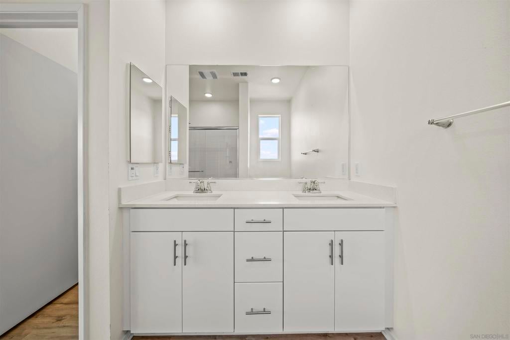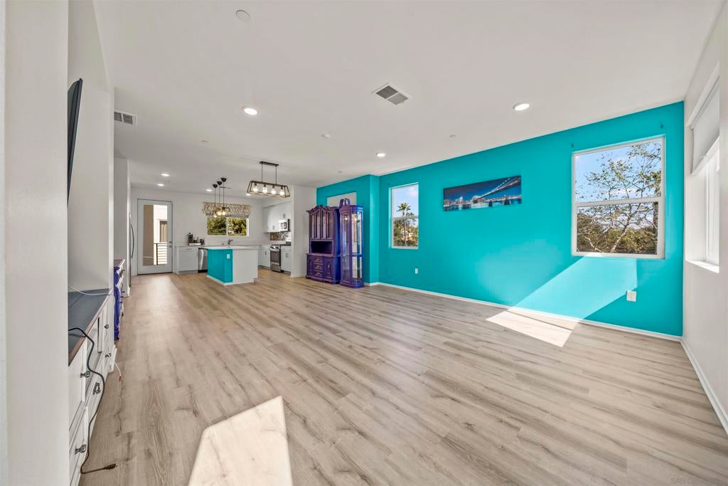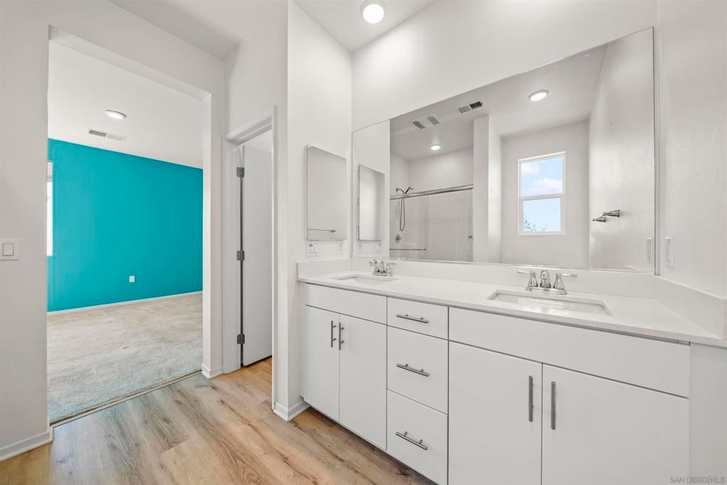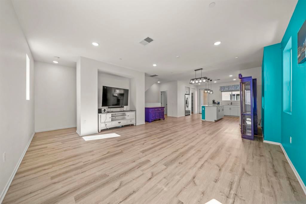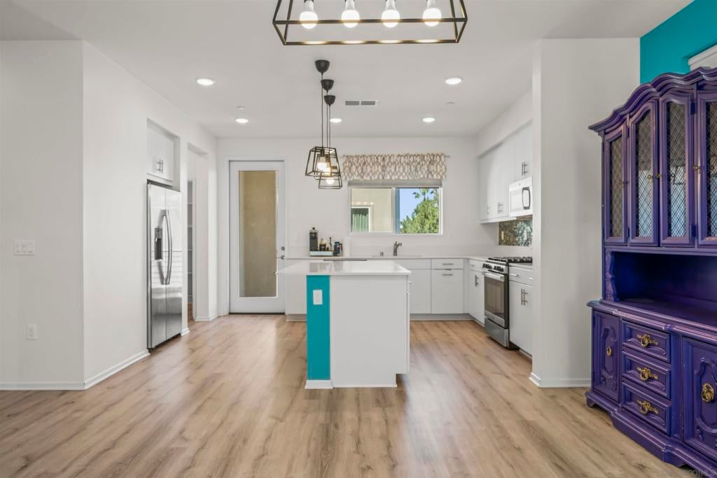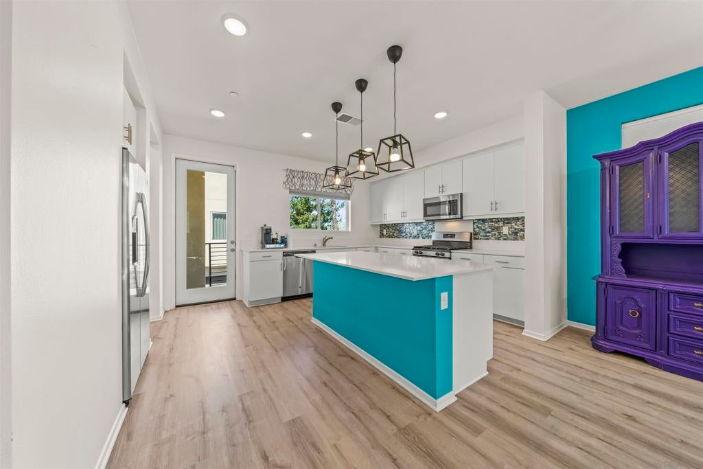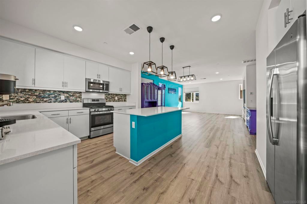 Welcome to the highly desirable gated community of Playa Del Sol, where modern living meets resort-style amenities. This spacious home features 4 bedrooms and 3.5 bathrooms with over 1,900 sq ft of living space, offering a functional and versatile layout. One bedroom and a full bathroom are conveniently located on the first floor, ideal for guests, extended family, or a home office. The main living area showcases an open-concept floor plan with a large kitchen featuring quartz countertops, shaker-style cabinetry, stainless steel appliances, and a center island with breakfast bar seating—perfect for entertaining. The home also includes luxury vinyl plank flooring, central air conditioning, and an attached two-car garage. Residents of Playa Del Sol enjoy resort-style amenities including a community pool, clubhouse, fitness center, playground, and BBQ areas. Conveniently located near shopping, dining, schools, and with easy access to major freeways for commuting. This community is FHA and VA approved, making it ideal for first-time buyers and veterans.