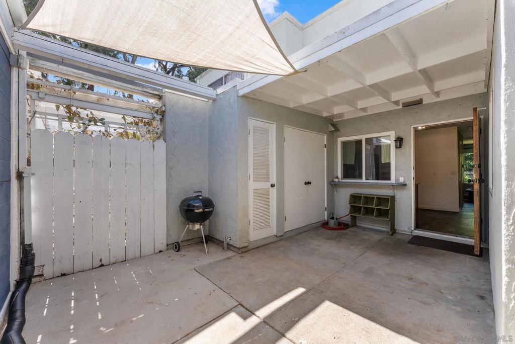 Located in the desirable Carlton Oaks community, this spacious townhome is one of the larger units in the complex and offers an excellent combination of privacy and convenience. Positioned at the end of the row farthest from the street, the home enjoys a quieter setting and an open outlook with no neighbors directly in front. The functional floor plan includes a versatile den downstairs near the kitchen, ideal for a home office, playroom, or additional living space. The main living areas flow comfortably for everyday living. A unique highlight is that this is the only unit in the row featuring a private balcony off one of the bedrooms, overlooking the green space and open area in front of the home. The property is also located directly next to the Santee Dog Park, offering convenient access to outdoor recreation. Additional features include a detached two-car garage and private outdoor space, upgraded dual pane windows, newer HVAC and newer water heater.