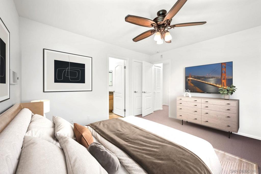 Gorgeous, unfurnished, top-floor, corner 2-bedroom, 2-bath condominium overlooking peaceful green space and flowing water feature in Carmel Valley's Del Mar Villas. Bright, open floor plan, upgraded kitchen with granite counters and stainless steel appliances, new carpet, freshly painted, washer & dryer in the residence, resort-style complex with sparkling pool, spa, tennis courts and gym. Two parking spaces including one carport plus one uncovered space. Enjoy award winning Carmel Valley schools, exceptionally convenient to corporate centers, La Jolla, Del Mar, parks, beaches & more! Available now! Some photos are virtually staged.