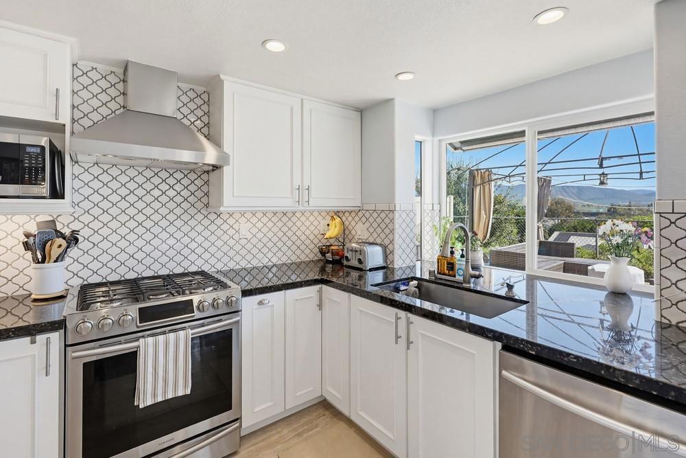 Welcome to this beautifully maintained home tucked away on a quiet cul-de-sac in the desirable Hillsborough community of Paradise Hills. Light, bright & thoughtfully designed, this residence offers 3 bedrooms, 2.5 bathrooms & a 2-car garage with extensive built-in storage cabinets. The inviting living room features soaring vaulted ceilings & a cozy fireplace, creating an open & welcoming atmosphere filled with natural light. The updated kitchen combines style & function with granite countertops, custom tile backsplash, white cabinetry, stainless steel appliances, recessed lighting & a convenient eat-at bar. Wood-look tile flooring, wood floors & classic 6-panel doors add warmth and character throughout the home. A versatile flex space & bedroom on the first floor provide ideal options for guests, a home office, or multi-generational living. Upstairs, the spacious primary suite offers vaulted ceilings, mountain views, a walk-in closet & private en-suite bath featuring dual sinks & a walk-in shower with built-in seating. Step outside to the backyard designed for relaxing and entertaining, complete with stamped concrete, a covered patio & a fully fenced yard. The front yard offers low-maintenance landscaping with garden plants for easy upkeep. Additional upgrades include newer slider, new water heater, new outside paint, ceiling fans throughout, garage door opener & abundant storage in the garage. Residents enjoy access to the Hillsborough HOA amenities including two community pools, spa, tennis courts, playground, clubhouse & open grassy areas perfect for outdoor activities.