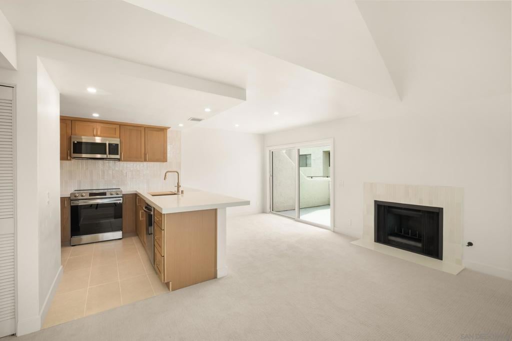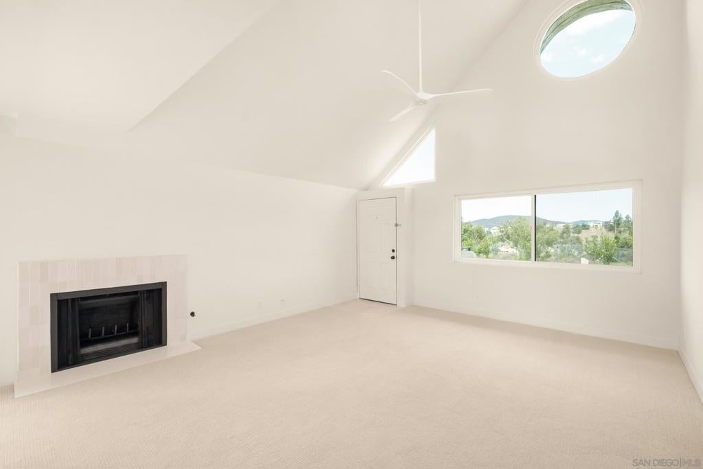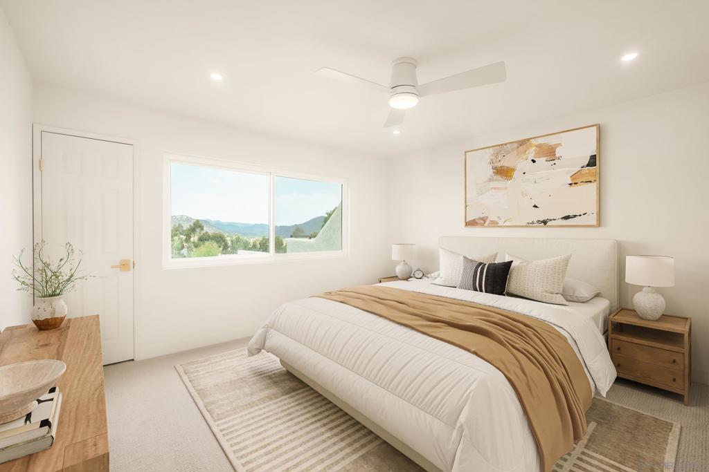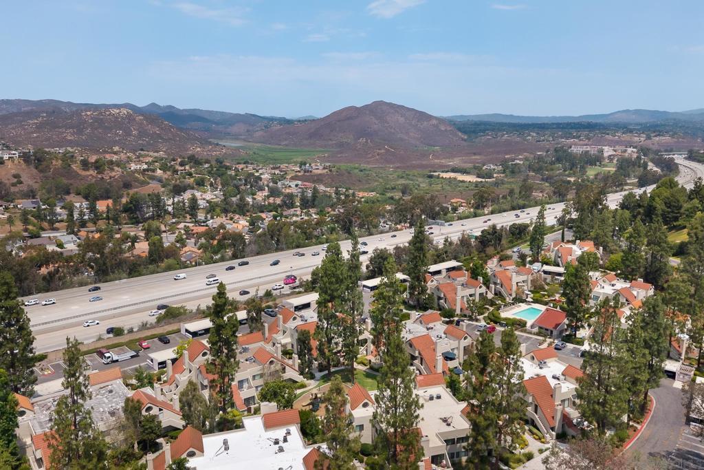 FHA & VA Approved Complex! Enjoy fantastic views of the mountains and Lake Hodges from this beautifully updated upstairs corner unit, filled with natural light and vaulted ceilings in the living room. This stylish home features brand-new white oak cabinetry, quartz countertops, and a fully refreshed bathroom for modern comfort. The spacious primary bedroom offers a huge walk-in closet plus an additional closet for plenty of storage. New dual-pane windows throughout, plush new carpeting, and a newer central HVAC system provide year-round comfort. A stacked washer and dryer are conveniently located in the hallway closet. Unit comes with one covered carport and one assigned open space just outside the unit, along with ample guest parking. Don’t miss this move-in-ready gem with serene views and quality upgrades!