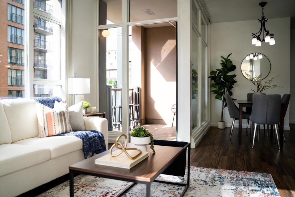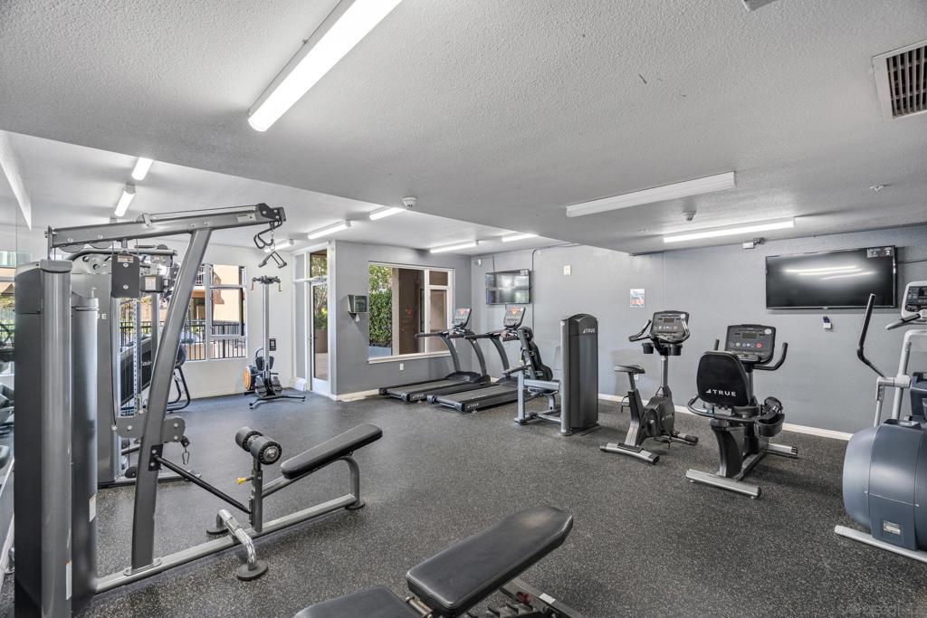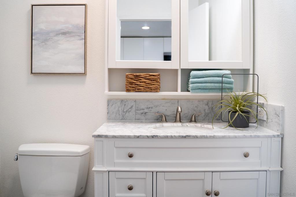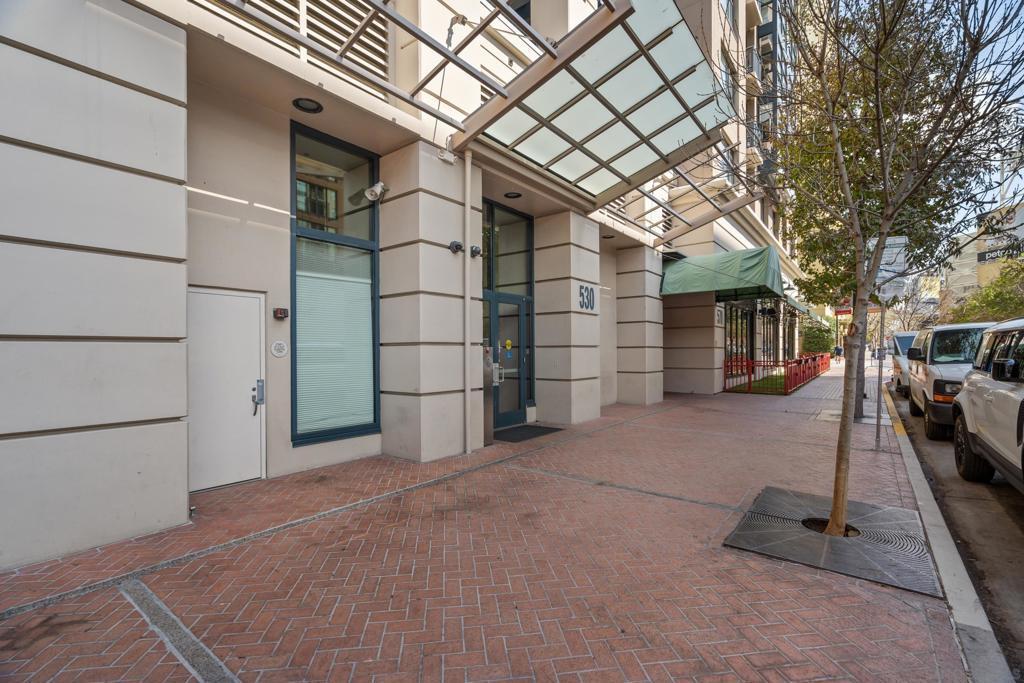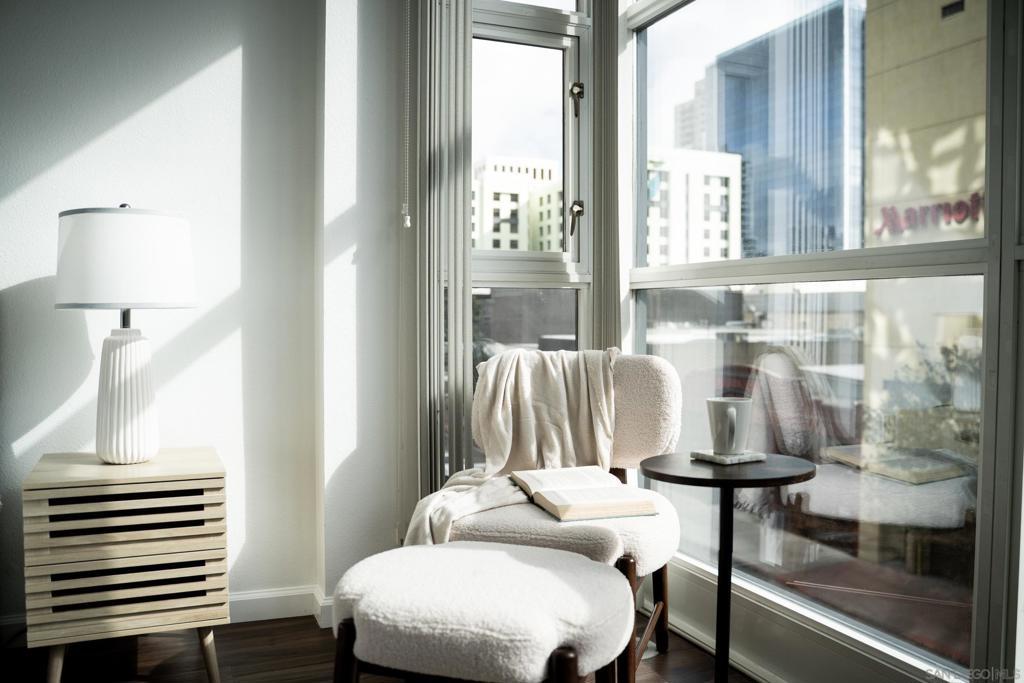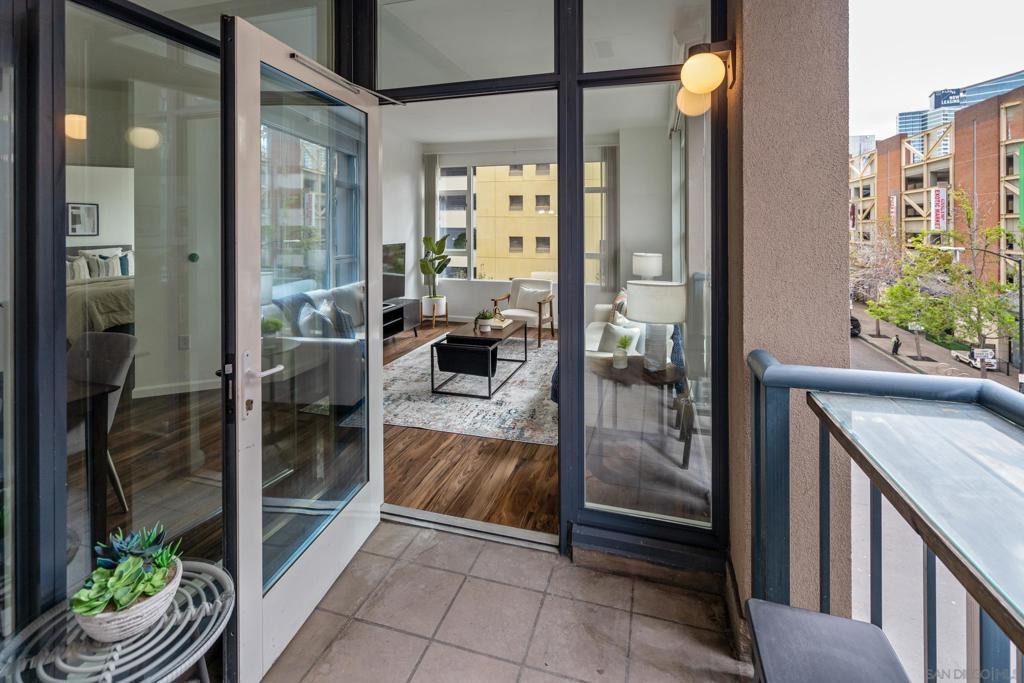 Experience a sophisticated and effortless downtown lifestyle from this perfectly positioned southeast corner residence, where abundant natural light and thoughtful design create the ideal lock-and-leave urban retreat. This exceptional two-bedroom condo with a desirable split floor plan & two parking spaces (side-by-side) offers both privacy and functionality while showcasing stylish, desirable upgrades throughout. Step through the entryway into an open-concept living space featuring views of Petco Park and the iconic right-field jumbotron, creating a dynamic downtown backdrop. The reimagined gourmet kitchen impresses with a newly added island and pantry, luxurious granite countertops with a full-height backsplash, and a suite of upgraded appliances, including a ZLINE range for coveted gas cooking, dishwasher, microwave hood, and refrigerator—perfect for both casual dining and effortless entertaining. The serene primary suite features custom built-in closets and a beautifully renovated bathroom showcasing large-format tile, an elegant Carrera marble vanity, and an oversized mirrored medicine cabinet. The guest bathroom has also been fully remodeled, offering matching finishes and contemporary design. Additional highlights include luxury vinyl flooring throughout, designer paint, custom built-in closets in both bedrooms, two hallway closets with integrated shelving, and a thoughtfully designed layout that maximizes both comfort and livability. Modern urban comforts include in-unit laundry and, providing both convenience and functionality. Trellis is a VA-approved community offering exceptional amenities, including weekend evening security, a fully equipped fitness center, rooftop BBQ terraces on the second floor, an interior courtyard seating with a tranquil water feature, Amazon package lockers, a community information display, and a sleek modern lobby entrance. Residents enjoy a prime downtown location close to Petco Park, Gallagher Square, the historic Gaslamp Quarter archway, renowned dining and shopping, bus and trolley transportation, the new Children’s and Dog Park, and the Harbor Drive Pedestrian Bridge, which connects to The Rady Shell, the Convention Center, Seaport Village, Embarcadero Parks, the Coronado Ferry Landing, and San Diego Bay. The very best of the city is just moments from home.