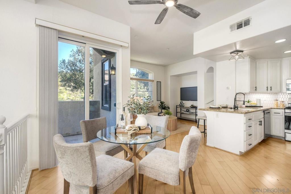 Light, bright end-unit townhome in San Marcos! This well-maintained home features hardwood floors in the main living area, brand new kitchen appliances, and central heat and A/C for year-round comfort. The functional layout offers three bedrooms, each with its own private bathroom, making it ideal for college roommates, guests, or shared living. Enjoy the convenience of a 2-car garage with direct access and a comfortable, light-filled living space. Owned solar system with 10kwh battery! Great location close to shopping, dining, and local amenities. Minutes to Cal State San Marcos.