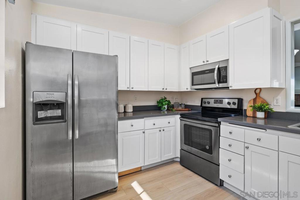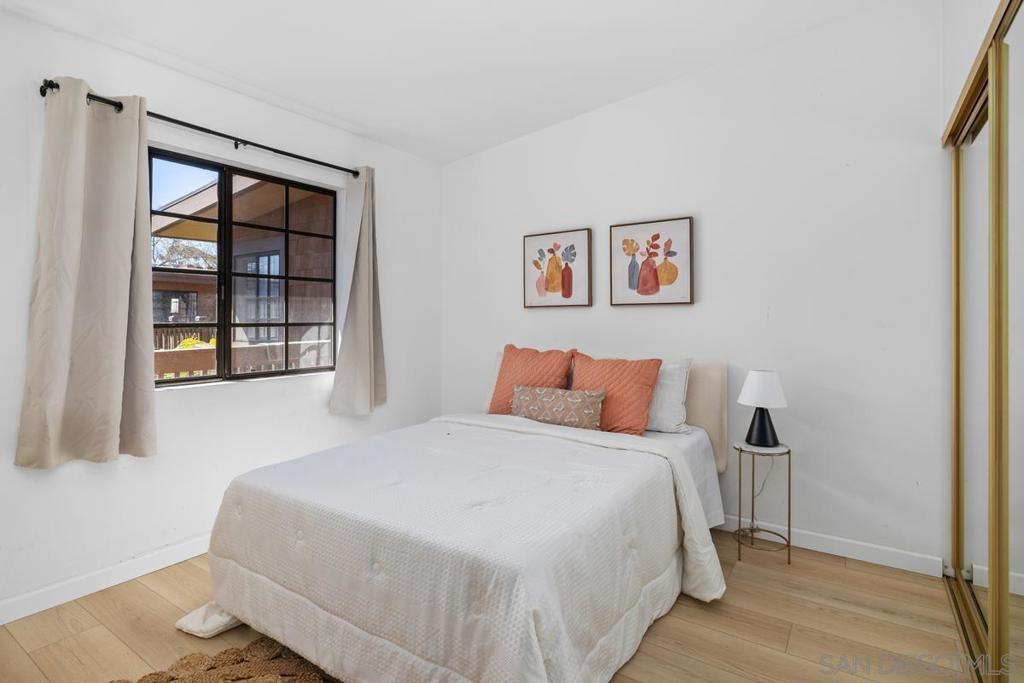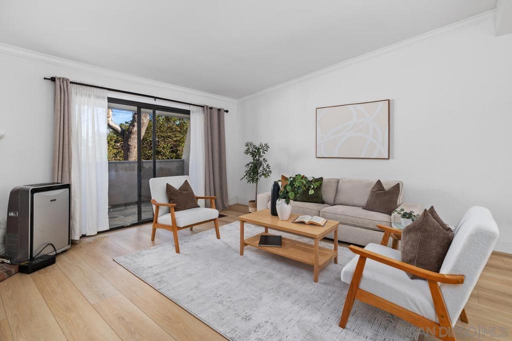 Top-floor La Jolla condo with views in the well-kept Boardwalk community—tucked off the street for added peace and privacy. Take in a panoramic outlook from a bright, open living room. Vaulted ceilings, crown molding, a cozy fireplace, new LVP flooring and in-unit washer/dryer. Two large assigned parking spaces. Stroll to UCSD, shopping, restaurants, and the movies. West of I-5 and just minutes to freeways, top hospitals, and La Jolla’s beaches. Great as a full-time residence, campus-close getaway, or long-term investment.