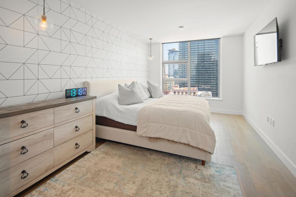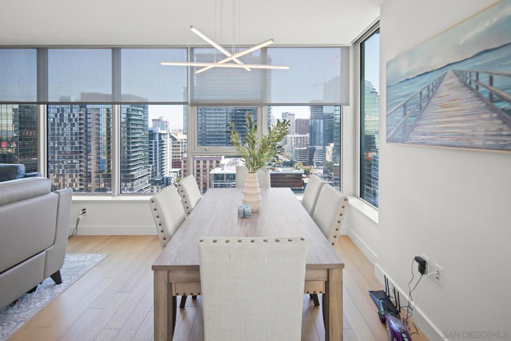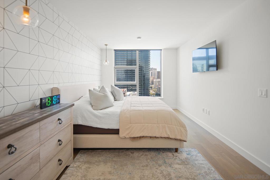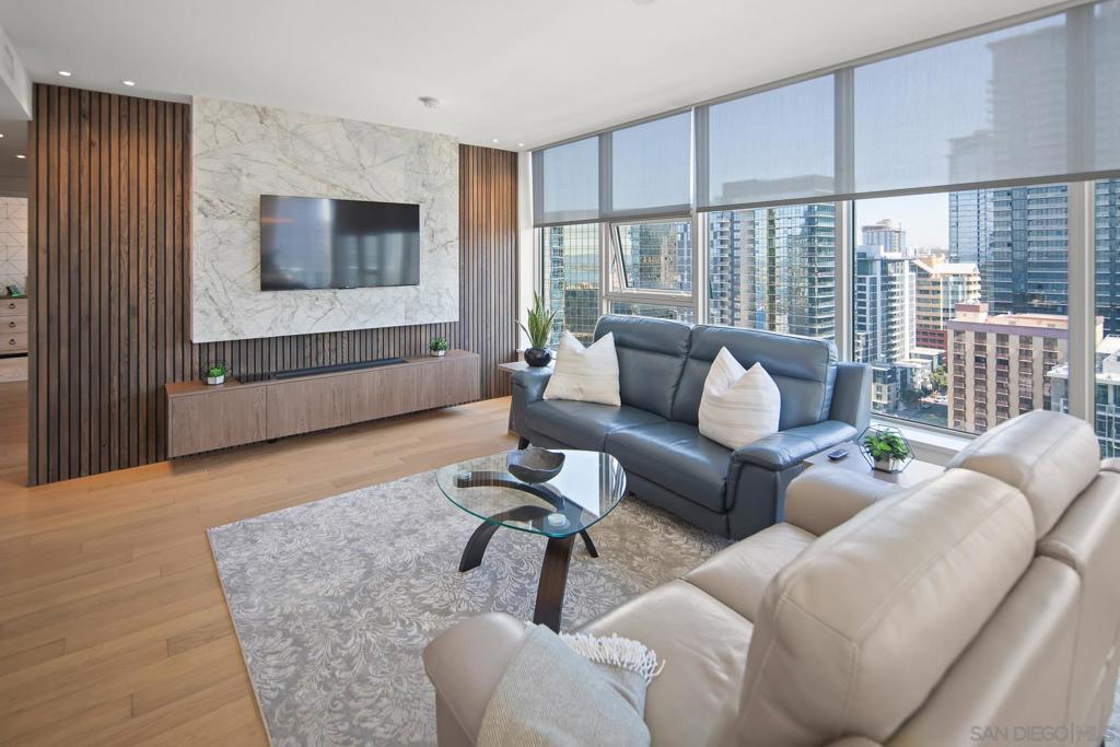 Introducing Residence 2006 at Savina, the epitome of modern luxury living in Downtown San Diego! This sophisticated 2-bedroom, 2-bathroom unit is situated on the southeast corner, providing breathtaking views of the Savina pool, the Bay, and the dynamic city skyline. Step into an elegant interior featuring a custom-built entertainment center with a cozy fireplace, complemented by the warmth of hardwood flooring throughout. With the convenience of 2 parking spaces and inclusive wifi, this residence offers both style and functionality. Savina's prime location places you mere seconds away from the Waterfront and the lively atmosphere of Little Italy. Experience over 24,000 sqft of hotel-inspired amenities, including 24-hour security, a resort-style pool and spa, a cutting-edge gym, and even a pet retreat for those late-night strolls. Residence 2006 at Savina is not just a home; it's a statement of contemporary urban living, providing an unparalleled blend of comfort, style, and convenience.