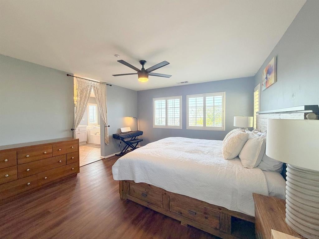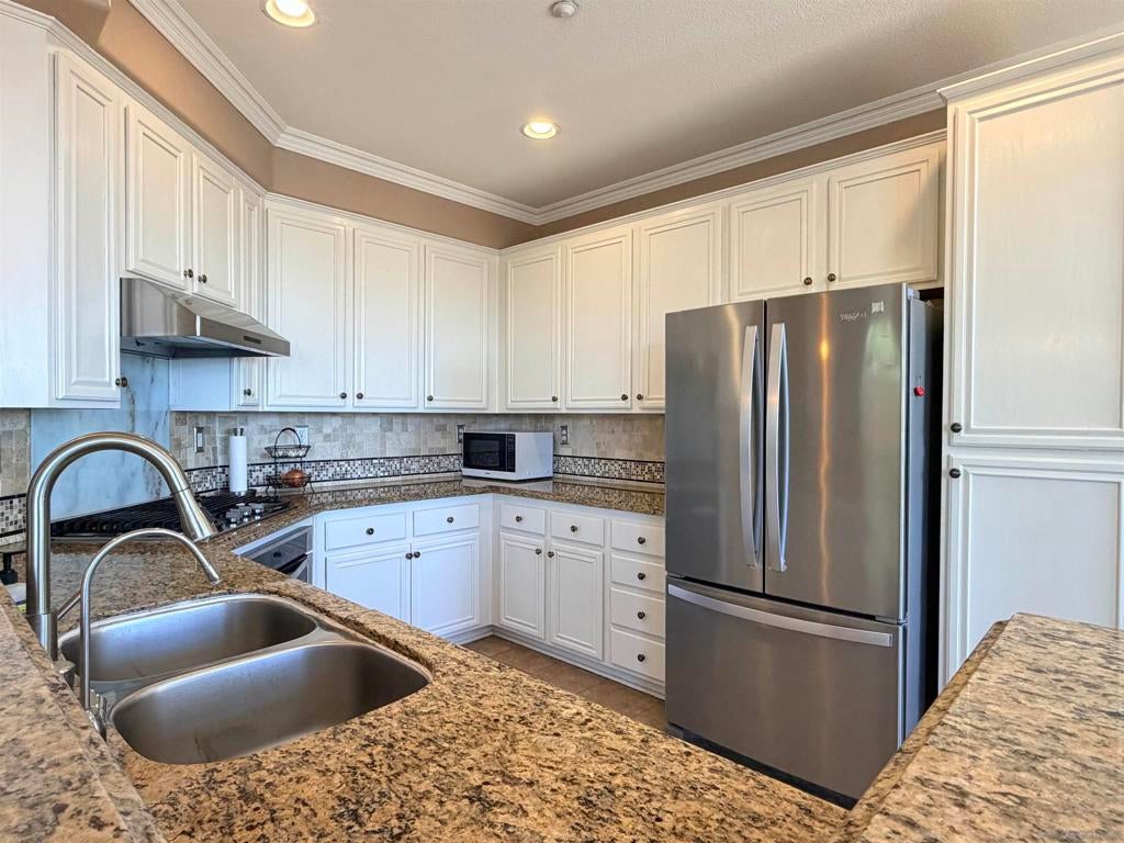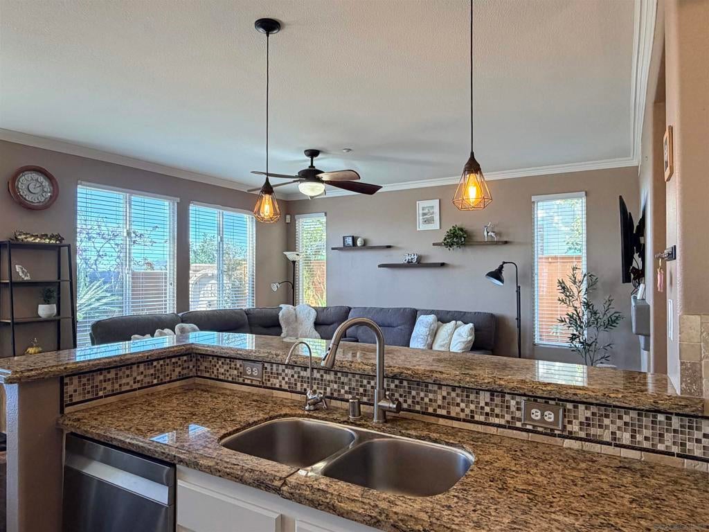 Nestled within the highly sought-after Tanglewood community of 4S Ranch, this rarely available END-UNIT residence offers exceptional privacy, a light-filled interior, and a wealth of thoughtful upgrades. The home features beautiful hardwood and luxury vinyl flooring, elegant crown molding, a new bathroom vanity, and tasteful light fixtures that create a modern ambiance throughout. The well-appointed kitchen showcases granite countertops, stainless steel appliances, a newer dishwasher, a high-performance range hood, and an ample pantry—perfectly suited for both everyday living and effortless entertaining. Designed for both comfort and efficiency, the home includes OWNED SOLAR PANELS and NEW HVAC SYSTEMS, providing energy savings and year-round climate control. The spacious and versatile floor plan offers 3 bedrooms, 2.5 bathrooms, and a generous loft, ideal for a home office, media room, or play space. The primary suite serves as a private retreat, where you can wake up to serene views and unwind in the evening while overlooking the distant horizon. Step outside to the backyard and take in BREATHTAKING SUNSET VIEWS, with PEEKABOO OCEAN VIEWS visible on clear coastal days. The home is located within the AWARD-WINNING Poway Unified School District and within walking distance of Del Norte High School, one of the region’s premier STEM-focused schools. Residents also enjoy convenient access to the community park just across the neighborhood, along with nearby shopping centers, restaurants, and the many amenities that make 4S Ranch one of San Diego’s most desirable communities.