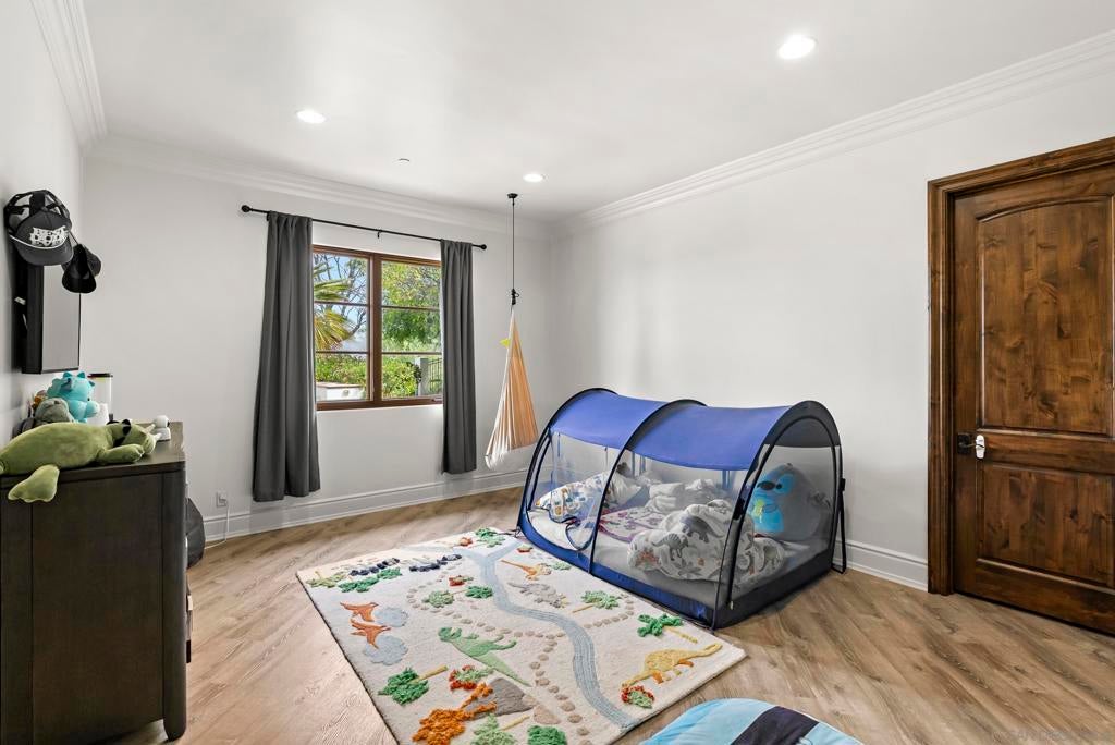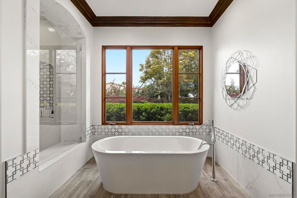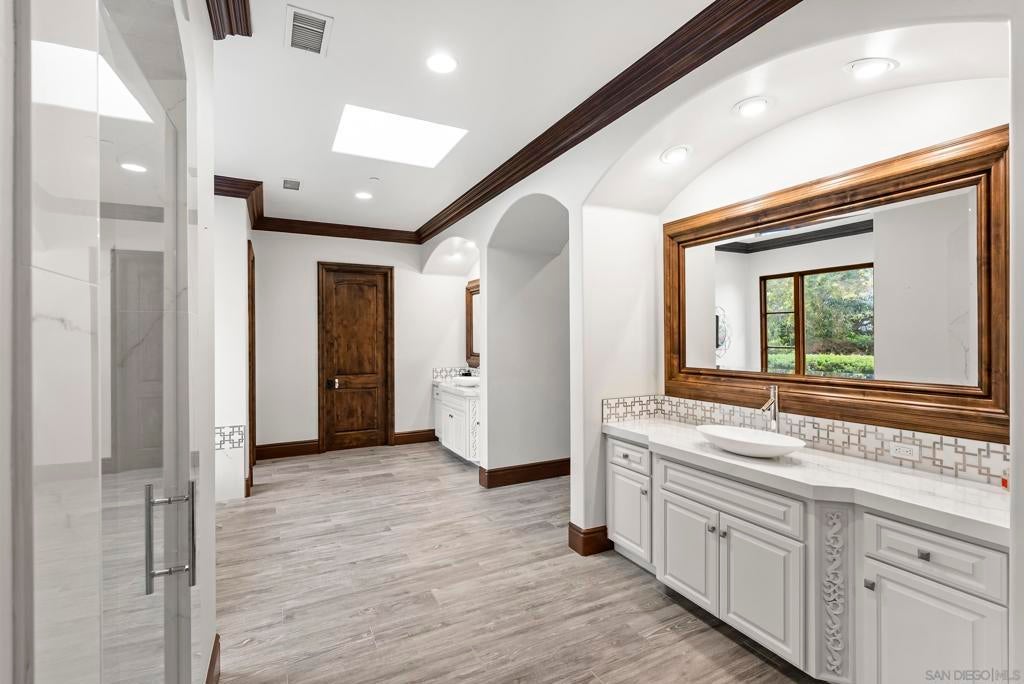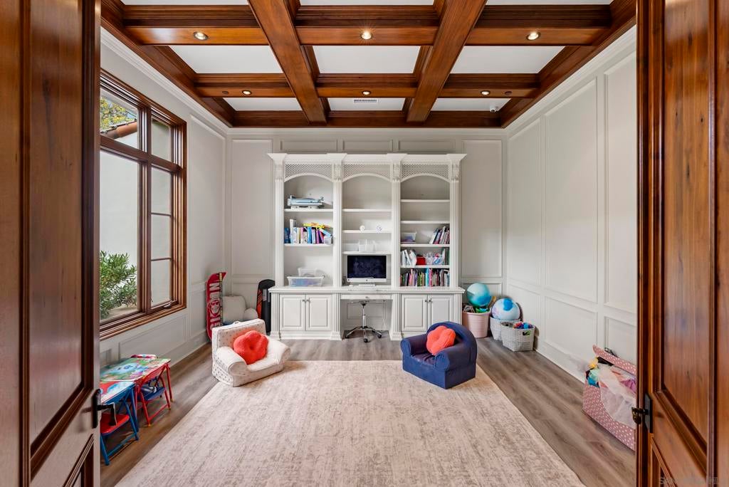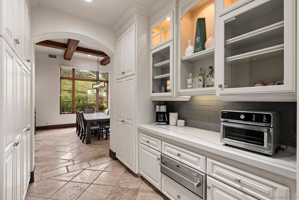 Stunning single-level home with spectacular panoramic views located in the guard gated community of The Crosby at Rancho Santa Fe. Spanning approximately 6,085 square feet, this custom-designed home features 4 bedrooms plus a dedicated office, soaring ceilings, and an abundance of natural light throughout. Upon entry, beautiful exposed wood beams immediately capture your attention, setting the tone for the home’s elegant design. The custom built-in office provides the perfect space for work or study. An expansive open-concept living room with fireplace flows seamlessly into the informal dining area and gourmet kitchen. The chef’s kitchen is outfitted with premium stainless-steel appliances, generous counter space, and a large island, making it ideal for both everyday living and entertaining. The home also features a private movie room for the ultimate entertainment experience. Each bedroom is ensuite, offering comfort and privacy. The spacious primary suite features soaring ceilings and a beautifully remodeled, light-filled bathroom complete with dual vanities, a large floating soaking tub, two water closets, and dual walk-in closets. Step outside to enjoy the expansive backyard with lush grass areas, a large pool and spa, and a fully equipped outdoor BBQ area—perfect for entertaining while taking in the amazing views. The family room opens to a covered outdoor living space with fireplace and seating, creating seamless indoor-outdoor living. Additional features include a 4-car garage and a prime location close to freeways, shopping, restaurants, and top-rated schools.