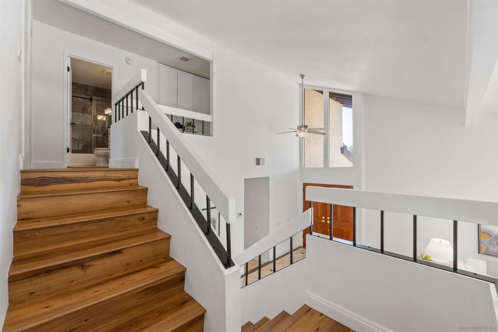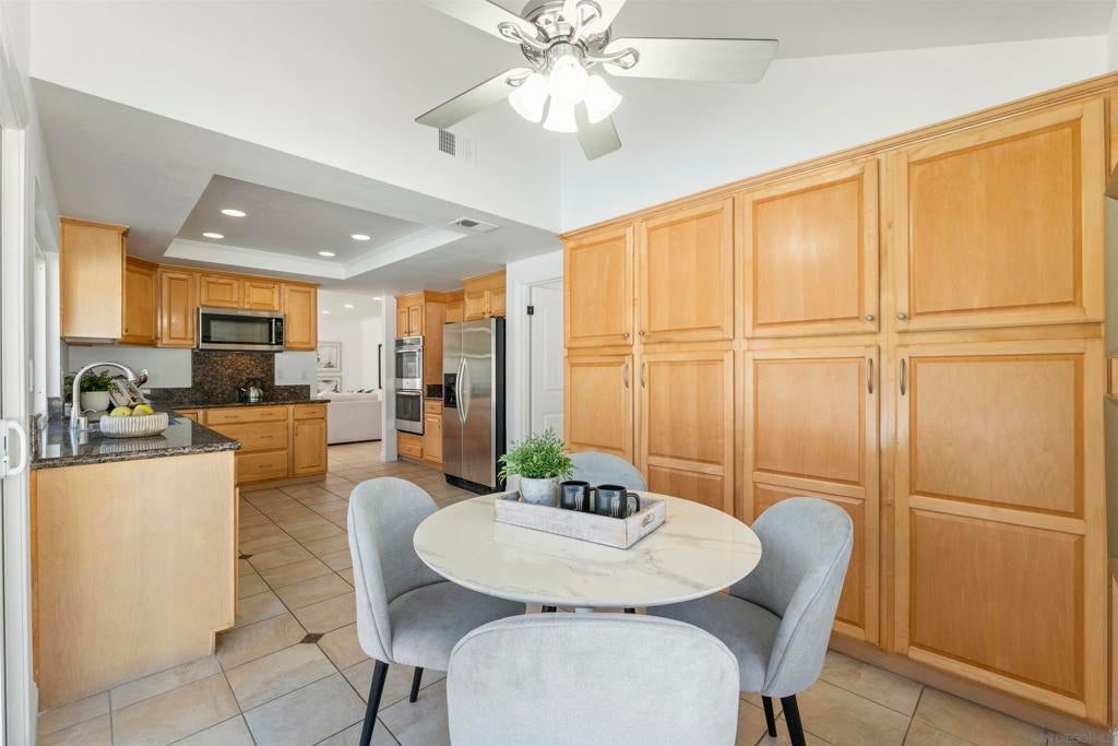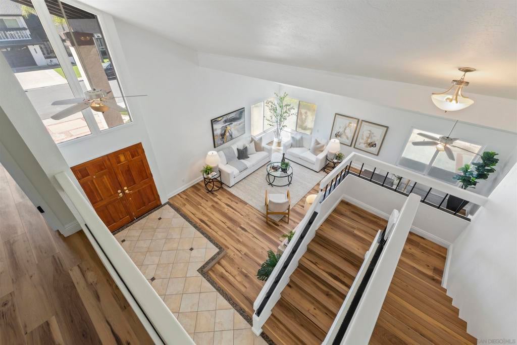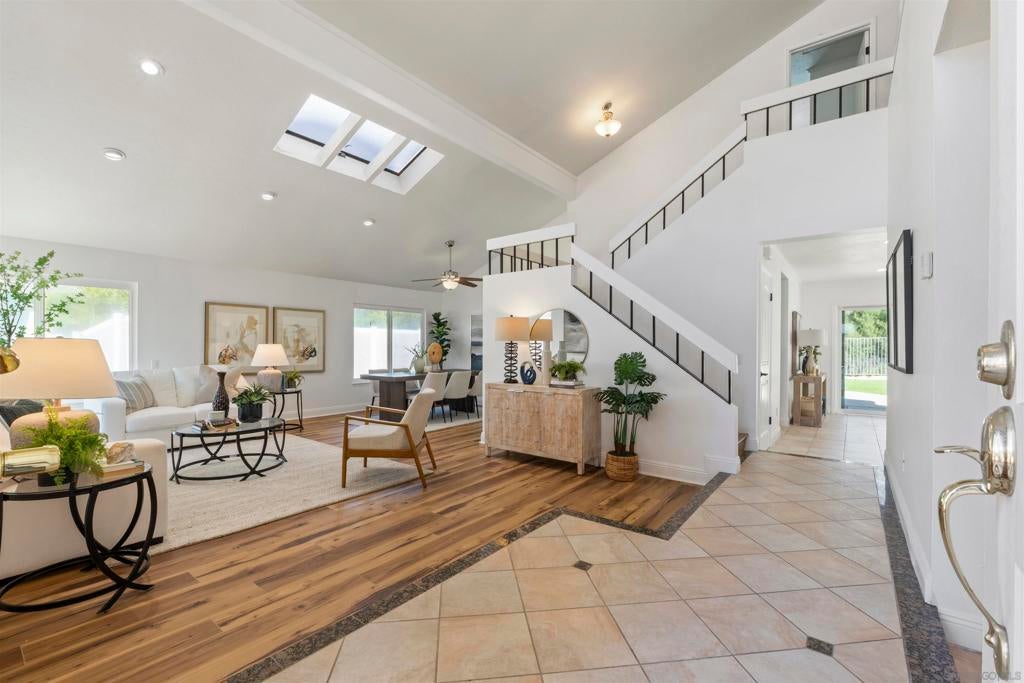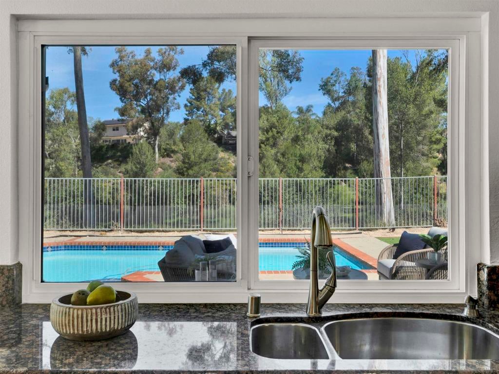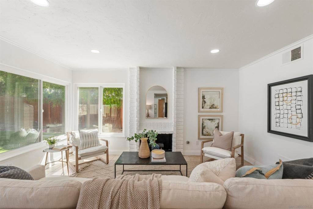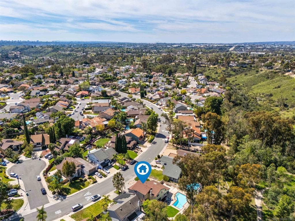 Located in the desirable Villa Trinidad community of Tierrasanta, this well-maintained two-story home sits on a canyon-side lot with a private pool and inviting outdoor space. Inside, soaring ceilings and abundant natural light highlight the spacious living and dining areas. The home offers 4 bedrooms and 3 fully remodeled bathrooms, including a convenient downstairs bedroom and full bath—ideal for guests, multi-generational living, or a home office.... See supplement The functional layout includes formal living and dining areas and a family room with a cozy fireplace. The kitchen features granite countertops, stainless steel appliances, and custom cabinetry. Upstairs, the primary suite includes a reading nook, while two additional bedrooms share a full bathroom. Additional highlights include updated LVP flooring throughout both levels, fresh interior paint, recessed lighting, and a newer HVAC system. The backyard is designed for easy outdoor living with a pool, artificial turf, and low-maintenance landscaping. Tierrasanta, known as the “Island in the Hills,” offers miles of trails in Mission Trails Regional Park, highly rated schools, community parks, and convenient access to I-15 and I-52, just minutes from Mission Bay, downtown San Diego, and the beaches.