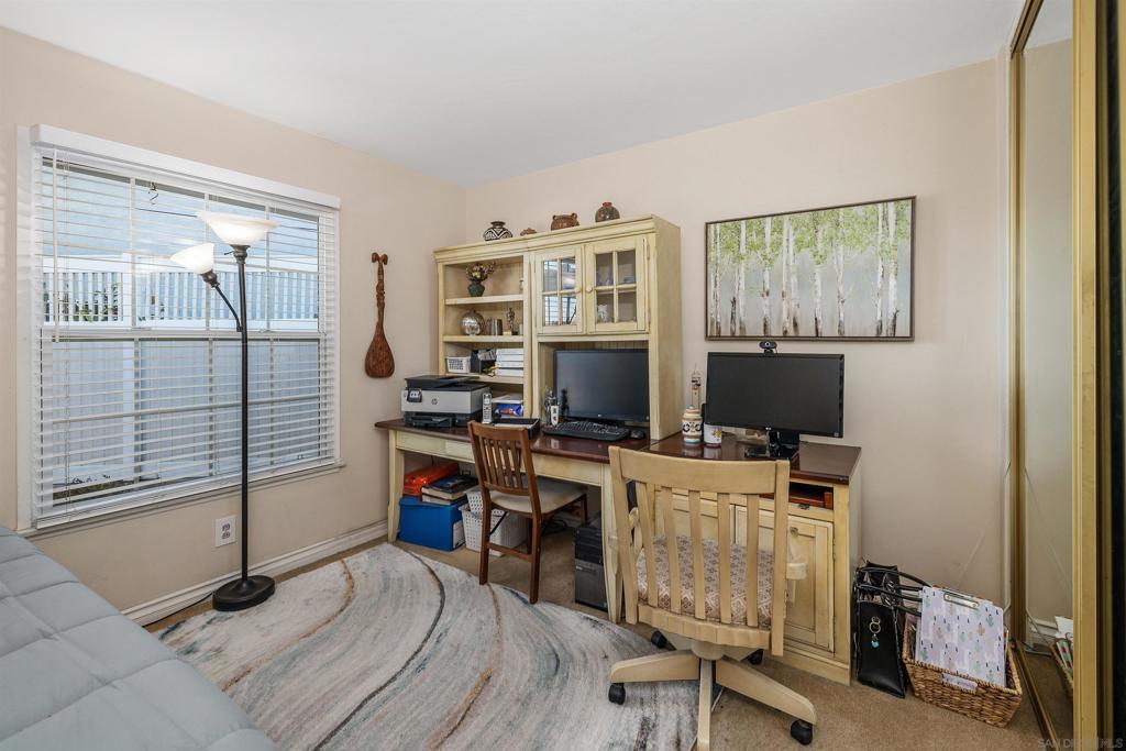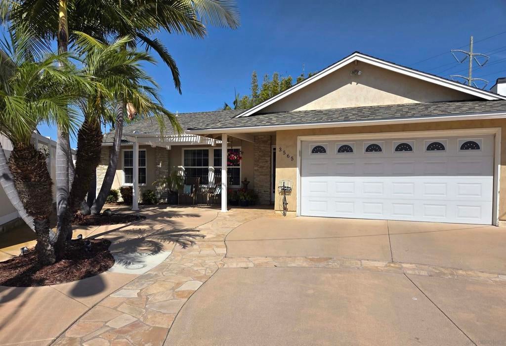 Rare Opportunity in the Mount Streets of Clairemont- Beautifully updated and well-maintained home located in the highly desirable "Mount Streets" of Clairemont Mesa West, tucked away on a quiet cul-de-sac. Situated on a unique triangular lot, this property offers exceptional indoor-outdoor living with a private backyard oasis featuring a pool, spa, and spacious recreational entertaining area. The outdoor space is ideal for gatherings and relaxation, enhanced by mature bamboo landscaping that provides added privacy. Inside, the home features an inviting family room with a fireplace and plantation shutters, creating a warm and comfortable living environment. The open kitchen & combo dining area includes stainless steel appliances and flows seamlessly into the main living spaces, making it perfect for everyday living and entertaining. The primary bedroom offers direct access to the pool area and includes a walk-in closet and en-suite bathroom, creating a comfortable and functional private retreat. Tax records reflect the home as a 3-bedroom, 2-bath property; however, the upstairs area is configured as a loft-style flex space offering versatility for use as a bedroom, office, or additional living area. A third bathroom provides convenient access from the pool and spa area, ideal for guests and outdoor entertaining. Additional highlights include a paved driveway, 2-car garage, and a large detached outdoor storage/workshop space.