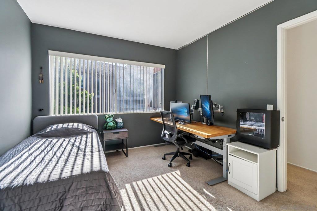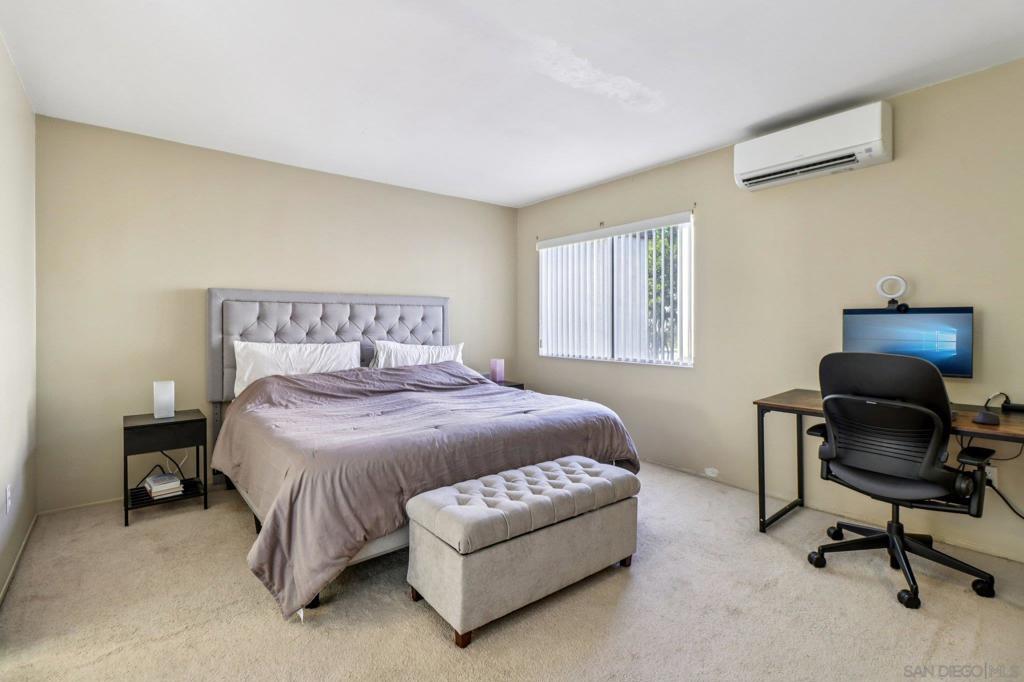 Bright and beautifully maintained townhome in the heart of Birdland, San Diego that blends modern updates and unbeatable convenience. The interior has been freshly updated with new paint throughout, newer flooring downstairs and in both upstairs bathrooms, and professionally cleaned carpet, giving the home a clean, move-in ready feel from the moment you walk in. The kitchen features wood shaker cabinets and quartz countertops, plus a brand new dishwasher. One of this home's standout features is the dual outdoor spaces, a rare and valuable bonus in condo living. Extra space to spread out, get some air, or just have somewhere to put a chair and decompress. Climate is handled year-round by a professionally installed mini split system both upstairs and downstairs, serviced and tuned up in November 2025, so you can enjoy efficient comfort in every season. The HOA here is truly a highlight — well-run and responsive. It covers limited insurance, water, sewer, trash, common area landscaping, and roof maintenance, with the roof having been serviced within the last two years. Located in Birdland, you're just minutes from major freeways, top hospitals, grocery stores, and everyday conveniences. Whether you're a first-time buyer, downsizing, or looking for a low-maintenance lifestyle without sacrificing space or quality, this condo checks every box. Spanning two stories and 1,200 square ft, this 2-bedroom, 2.5-bath home lives and feels far larger than its square footage thanks to an abundance of natural light and a thoughtful floor plan that maximizes every inch of space.