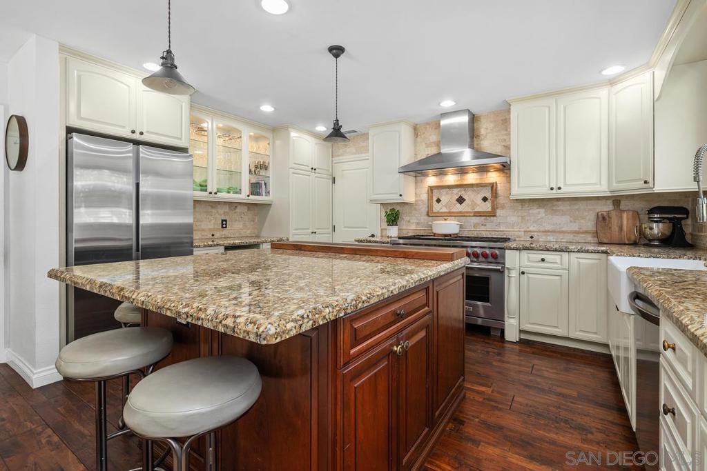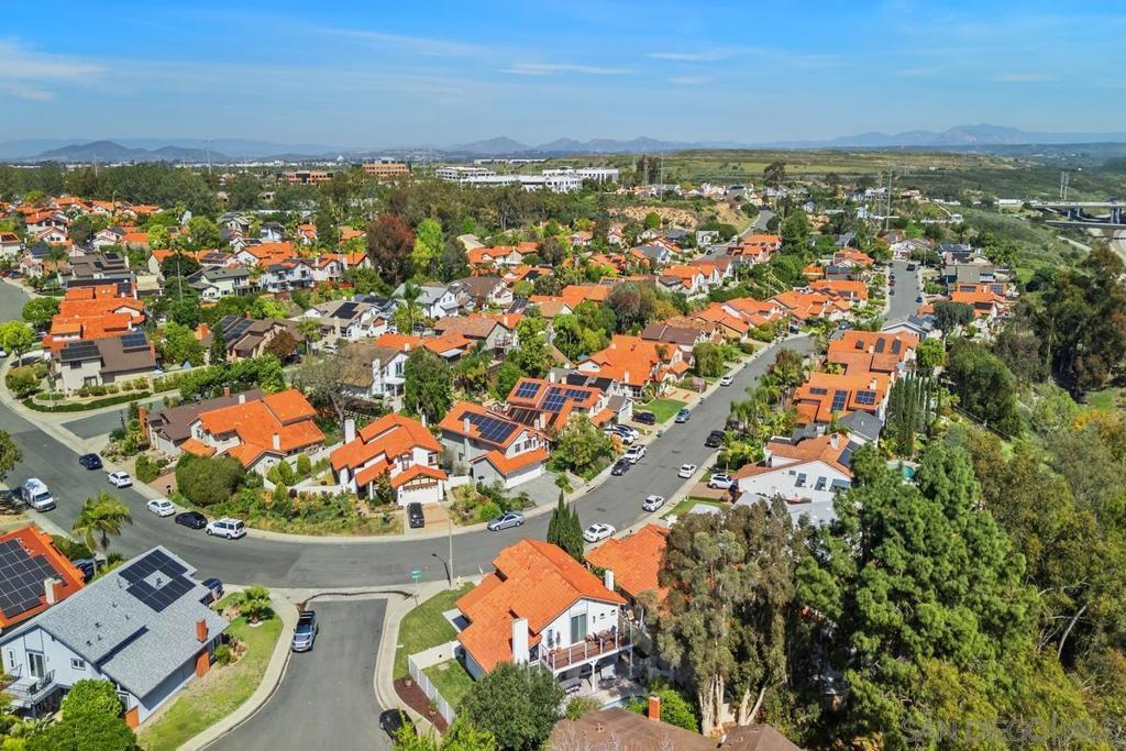Stunning remodeled home in highly sought-after University City, ideally situated on a large corner lot on a quiet cul-de-sac. This gorgeous and sun-filled home features soaring high ceilings, an open and airy floor plan, and beautiful hardwood floors throughout. The meticulously updated kitchen is designed for both everyday living and entertaining, featuring a premium Wolf range and seamless flow into the main living area. Expansive windows and thoughtful design create exceptional indoor/outdoor living, perfect for enjoying San Diego’s year-round sunshine. Highly desirable layout includes a downstairs bedroom and full bath—ideal for guests, multigenerational living, or a home office. Upstairs, the spacious primary suite offers a private retreat with an impressive 8-foot slider that fills the room with natural light and enhances the open feel to the balcony. Step outside to your own backyard oasis complete with a sparkling pool, ample space for entertaining, and room to relax or play. The large corner lot provides added privacy and curb appeal. Extensive upgrades include remodeled bathrooms, newer roof, HVAC system, concrete driveway, and fresh exterior paint, offering both style and peace of mind. Turnkey and move-in ready, this exceptional home is just minutes from top-rated schools, parks, shopping, dining, and all that University City has to offer. Welcome home!