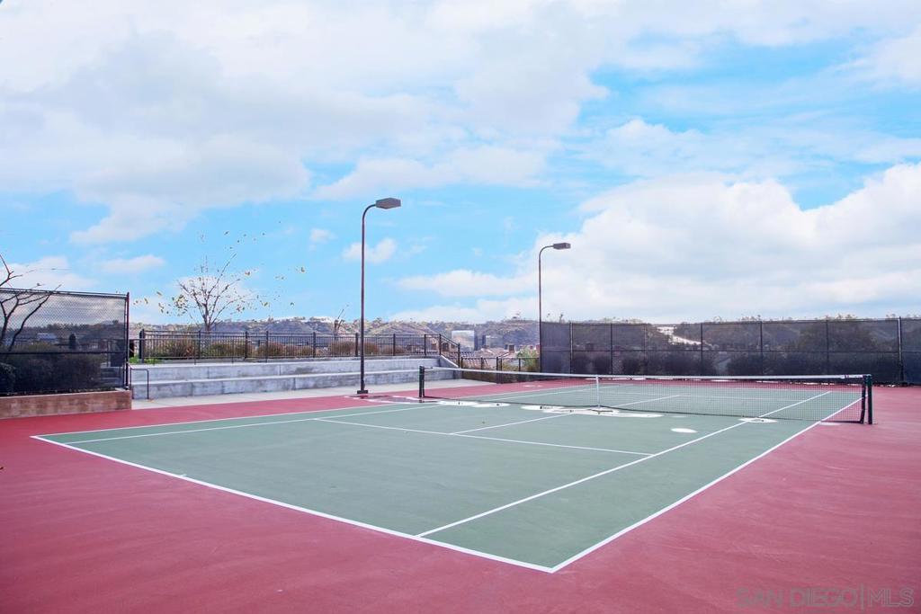 Tucked within the serene, gated community of Bridges at Escala in the heart of Mission Valley, this bright and spacious townhome offers the perfect blend of comfort, function, and lifestyle. Large windows fill the home with natural light, creating a warm and inviting feel from the moment you step inside. The main living area is both open and welcoming, centered around a tiled fireplace and a sliding door that leads to a private balcony, the perfect spot to enjoy a quiet morning or unwind at the end of the day. Just beyond, the kitchen is thoughtfully connected to the living space and features a built in microwave, tile countertops, and a double sink set beneath a large window, bringing in even more natural light. Also on the main living level is a guest bedroom and full bathroom, offering flexibility for visitors, a home office, or multigenerational living. Upstairs, the spacious primary suite serves as a peaceful retreat with its own ensuite bath featuring a double vanity, tiled countertops, and a shower/tub combination. A second upstairs bedroom also enjoys the privacy of its own ensuite bathroom, making the layout ideal for both everyday living and hosting guests. The home is complete with an attached oversized two-car garage, full-sized laundry, and a utility sink, along with valuable upgrades including recently installed HVAC and heat pump in 2023, a leased solar system, reverse osmosis system, and home network wiring installed in 2022. Beyond the home, The Bridges at Escala offers a beautifully maintained, resort-like setting with lush greenery and exceptional amenities including a pool, spa, tennis courts, kid's playground, dog park, BBQ area, clubhouse, and gym. All of this in a prime Mission Valley location, within walking distance to Snapdragon Stadium and Park, with easy access to the San Diego Trolley, Costco, IKEA, restaurants, shopping, and more.