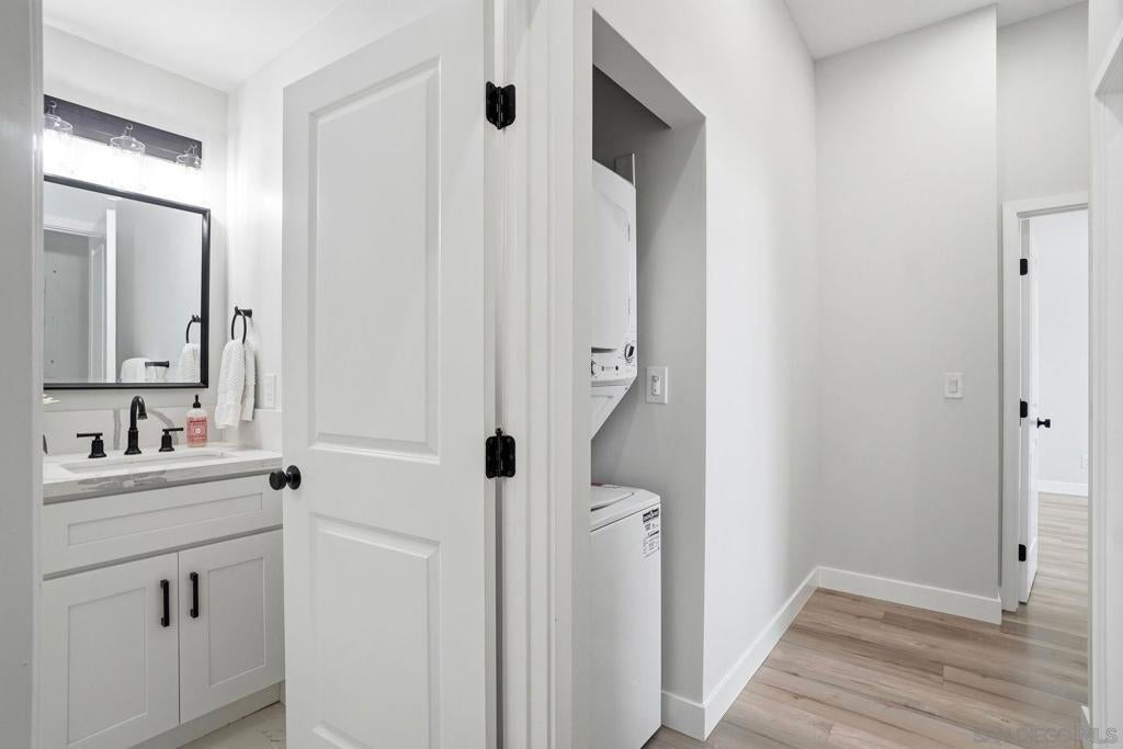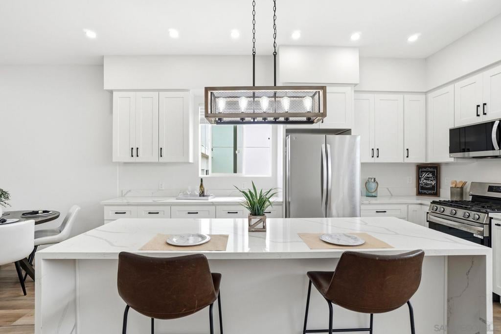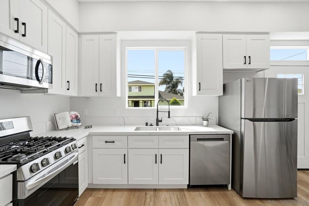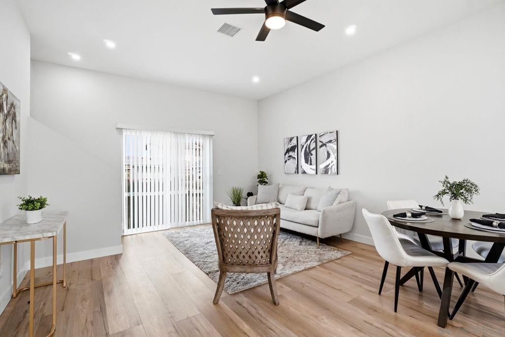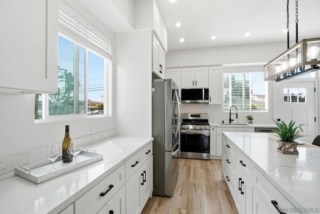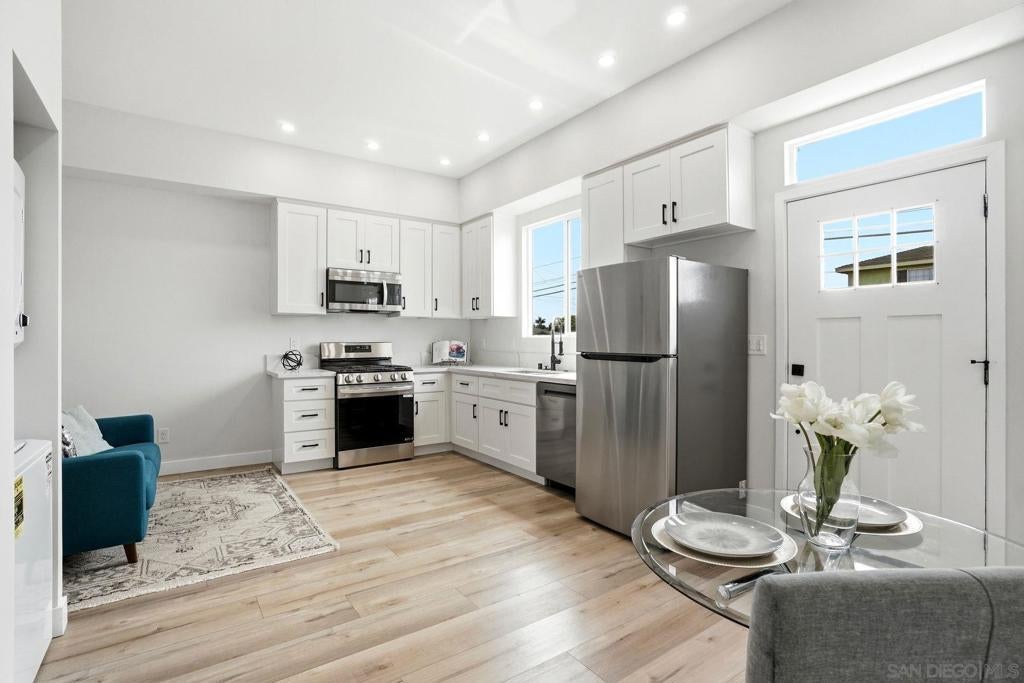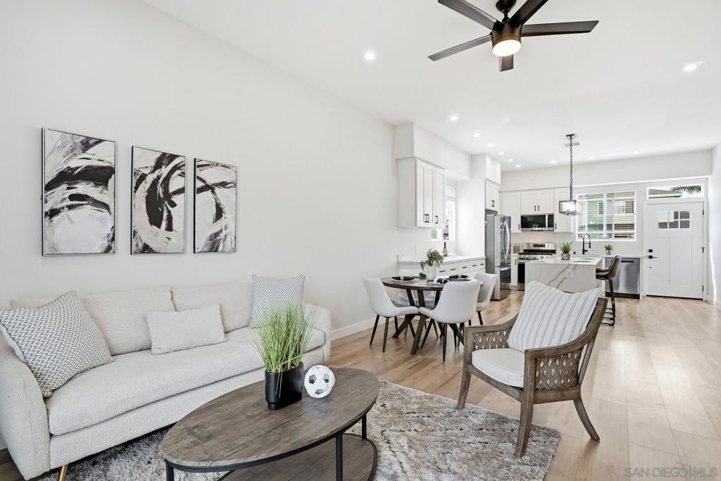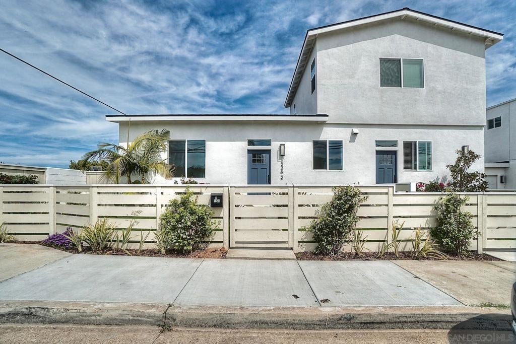 Two homes in one—built in 2024 and offering a fully permitted attached ADU for flexible living or income potential. The main residence is 4 bedrooms, 3 bathrooms, and approximately 1,914 sq. ft., paired with an attached 2 bedroom, 1 bath ADU of approximately 600 sq. ft., for a combined total of roughly 2,500+ sq. ft. The main home features a well-designed two-story layout with two ensuite bedrooms upstairs, including a primary suite with a walk-in closet, an upstairs laundry center and two additional bedrooms with a full bath on the main level—ideal for guests or single-level living. The lower level also has its own stackable laundry center. The open great room connects the kitchen, dining, and living areas, creating a bright and functional space. An attached two-car garage and additional driveway parking add convenience. The attached ADU is single-level with its own private entrance, yard, and in-unit laundry, offering excellent separation and usability. 2 beds 1 bath and nearly 600 sq feet. Each unit is a street front facing with its own private outdoor space with low maintenance artificial turf and beautiful landscaping. No typical "back house" ADU here! Both units were built new in @ 2024 and include high ceilings, abundant natural light, full appliance packages, and private fenced outdoor spaces with low-maintenance turf and landscaping. Located near the beach in Imperial Beach, this turnkey property offers modern construction and outstanding versatility. 2 units... Main house and ADU built in 2022. Beautiful homes!