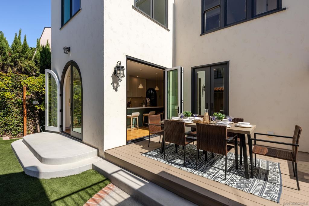 Modern Conveniences with Historical Charm. A rare offering on the coveted Adams Avenue loop in Kensington, this extensively reimagined 1920s Spanish Revival blends timeless architecture with the comfort and functionality of modern construction. Completely renovated inside and out, the home lives like new while preserving its original character and charm. The thoughtfully designed floor plan features a full ensuite bedroom on the main level, a formal living room with original fireplace and arched picture windows, and a dedicated dining space. The chef’s kitchen has been built from the ground up with high-end appliances, custom cabinetry, and French doors that open to a private backyard retreat, ideal for indoor-outdoor living. Upstairs, a newly constructed primary suite offers a peaceful escape with a spa-inspired bath, heated floors, walk-in shower, and private deck. Two additional bedrooms and a beautifully finished secondary bath complete the upper level. A fully finished detached garage with La Cantina doors and A/C provides flexible space for a gym, studio, or office. Above, a separate 1BD/1BA guest suite offers exceptional versatility for guests, extended living, or potential rental income. Upgrades include paid solar, EV charging, new ABS plumbing, and updated electrical and HVAC systems. A truly turnkey property in one of San Diego’s most sought-after neighborhoods. Modern living meets historic charm in the heart of Kensington. Ideally positioned on the beloved Adams Avenue loop, just moments from the village yet quietly removed from through-traffic, 4374 Adams Avenue is a fully reimagined Spanish Revival that has been extensively renovated to function like a new home while honoring its 1920s roots. Originally built with classic architectural detail, the home has undergone a comprehensive transformation, with nearly every system, finish, and layout element thoughtfully upgraded. The result is a seamless blend of old-world character and modern livability. The main level is designed for both everyday comfort and entertaining, featuring a formal living room with original fireplace, expansive arched windows, and custom wood detailing. A full ensuite bedroom provides flexibility for guests or multi-generational living. The chef’s kitchen serves as the centerpiece of the home, showcasing a timeless white palette, premium appliances, custom cabinetry, and French doors that open to a private outdoor setting complete with an adobe-style fireplace. Upstairs, the newly constructed primary suite offers a true retreat with a spa-like bathroom, heated floors, designer tile work, and a private deck with treetop and neighborhood views. Two additional bedrooms include individual climate control, and the secondary bathroom features elevated finishes and radiant heat. The detached garage has been fully built out with La Cantina doors and air conditioning, creating an ideal flex space for a gym, studio, or office. Above, a separate one-bedroom, one-bath suite adds significant value and versatility, perfect for guests, a home office, or potential ADU use. Additional improvements include paid solar, EV charging, new ABS plumbing, upgraded electrical, HVAC, and thoughtfully designed landscaping with drought-tolerant elements. Kensington is one of San Diego’s most cherished historic neighborhoods, known for its tree-lined streets, architectural integrity, and strong sense of community. Residents enjoy easy access to local cafes, restaurants, boutiques, and neighborhood events, all while maintaining a peaceful, residential feel just minutes from central San Diego.
