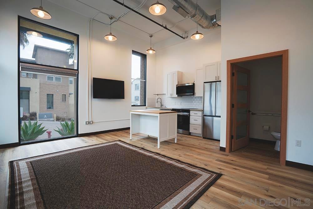 Come savor the breezes of Oceanside's coastal lifestyle! This brand-new, unique live/work condominium offers exceptional flexibility with approved residential and retail use. It's ideal for owner-users, entrepreneurs or even investors. This 1 bedroom and 1.5 bath unit is highlighted by dramatic 15-foot ceilings and a modern storefront style industrial design. Interior is finished with luxury plank flooring, designer Bali "zebra" shades, and a sleek, contemporary aesthetic throughout. The kitchen is fully outfitted with all-new Samsung stainless electric appliances, including a counter-depth French door refrigerator, slide-in range/oven, and advanced microwave. Additional upgrades include shaker cabinetry, quartz countertop, and a new in-unit washer/dryer. Building features include fire sprinklers, central alarm system, and two exclusive parking spaces. Located in a prime Oceanside location, the condo is approx. 1 mile to Camp Pendleton's San Luis Rey gate and directly adjacent to San Luis Rey River. Seller financing available for qualified buyers. Buyer is required to purchase an annual Business License with the City of Oceanside currently $53.00. Photos are of sold staged unit.