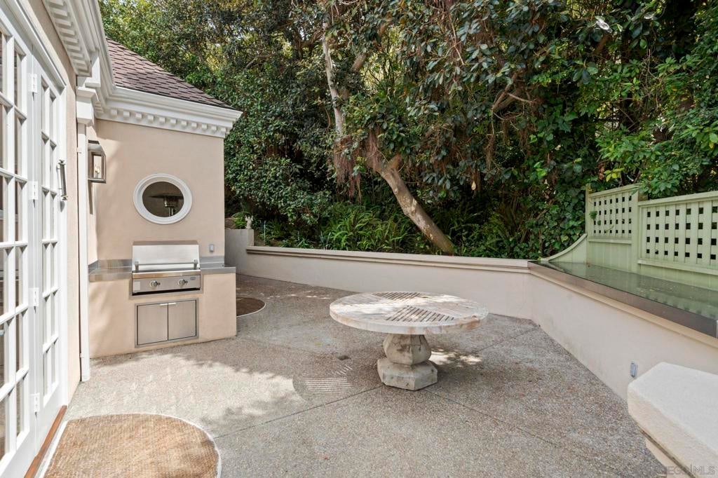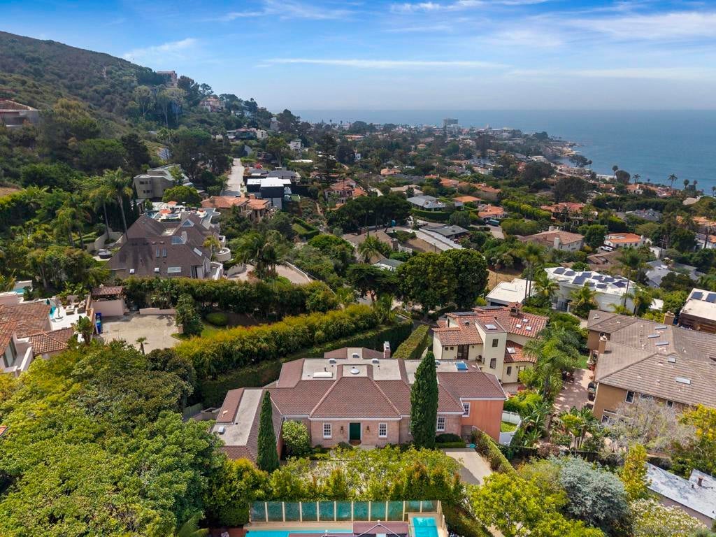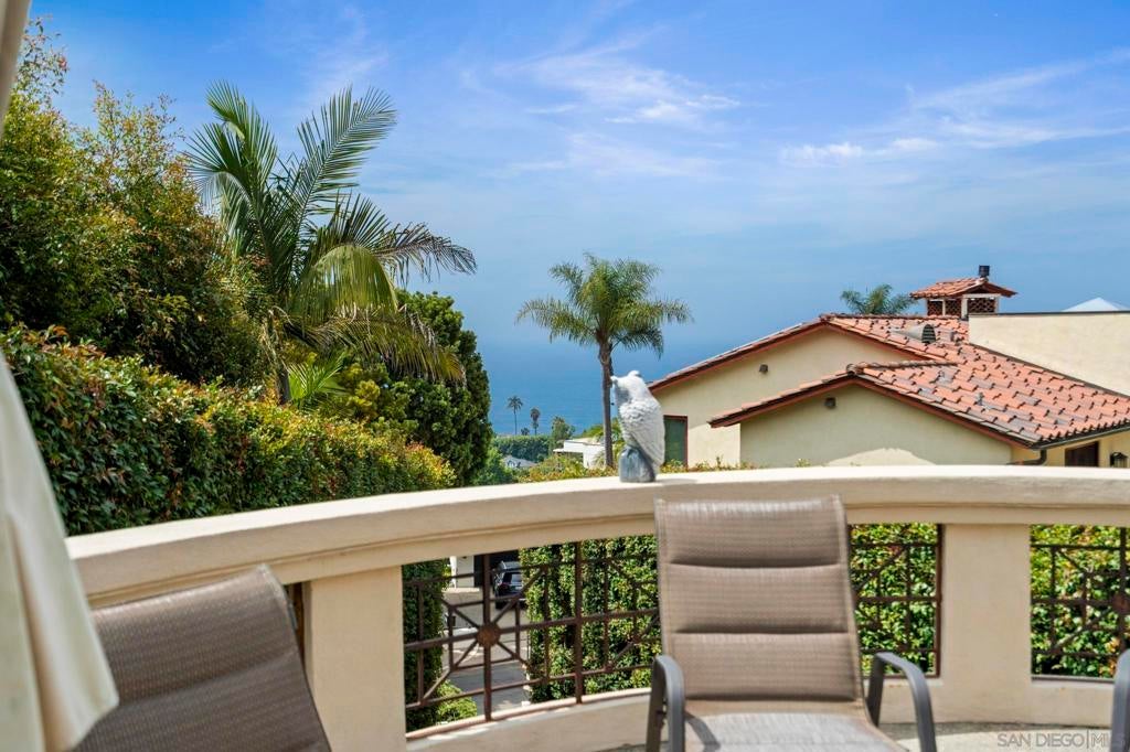 Perched on top of an elevated lot this Ocean view residence offers the ease of single level living with the primary on the main entry floor, but features two full bedroom ensuites downstairs with a full size laundry room and dedicated gym for everyday convenience. All bedrooms have multiple closets and balconies with ocean views, plus a lower level walk out creating ideal comfort and privacy. A skylit spectacular entry welcomes you in to a grand living space crowned by a soaring tray ceiling and brick fireplace. Elegant French doors with traditional individual mullions open to a charming viewing patio, plus larger seating space with a built-in BBQ is perfect for entertaining and enjoying cool ocean breezes. Full size den is filled with natural light, featuring large windows and additional French doors. Just off the kitchen is a large pantry area with desk seating, front view window, and a door for privacy. The home is is topped with a classic tile roof, timeless brick facade, long private drive that is being gated. A 12 month lease or longer is being considered.