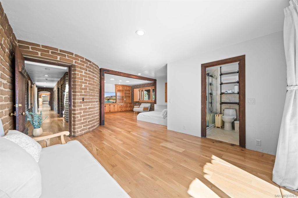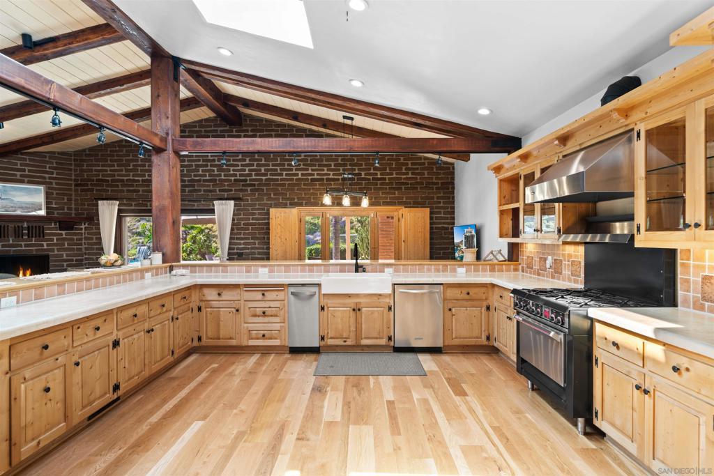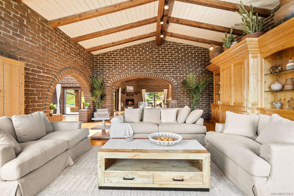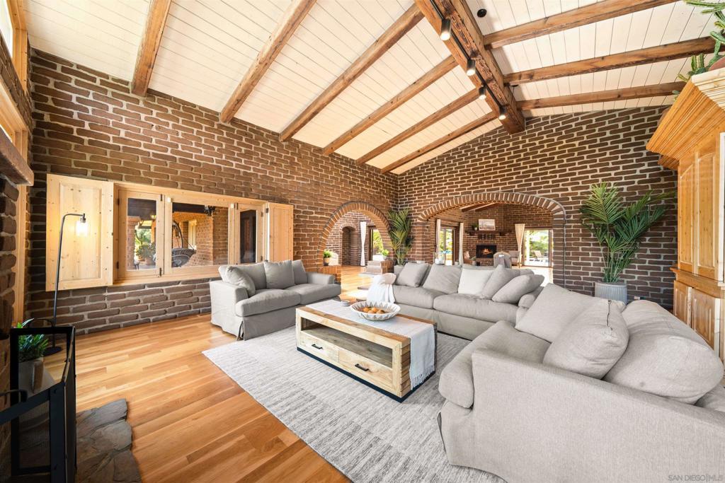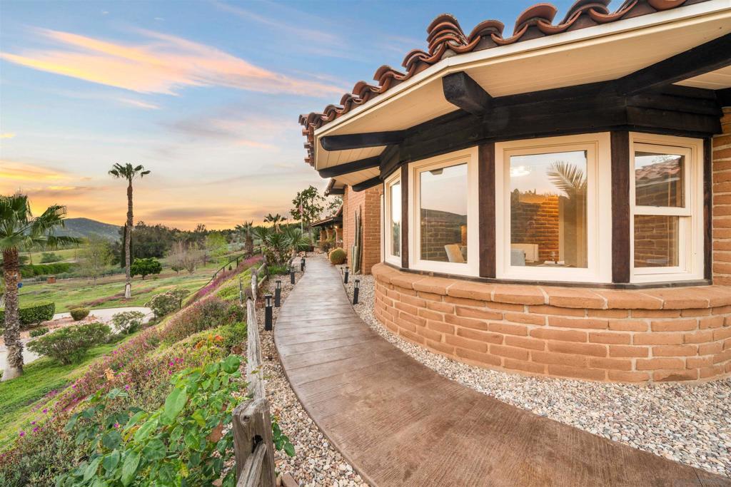 Perched atop a private hillside, this exceptional Spanish-style Adobe estate offers sweeping panoramic views and ultimate privacy on approximately 4.55 acres of beautifully usable land—a rare blend of scale, serenity, and functionality. A long, winding driveway leads through a gated entrance to a warm and inviting residence surrounded by lush landscaping, mature palms, and thoughtfully designed lighting that creates a stunning ambiance at sunset. Designed in timeless Spanish Mission style, the home features authentic adobe construction, clay tile roofing, soaring ceilings, exposed wood beams, and rich architectural details. Expansive windows fill the interior with natural light, highlighting multiple living areas and fireplaces, perfect for both everyday living and entertaining. The open-concept kitchen flows seamlessly into the main living and dining areas, creating an ideal indoor-outdoor California lifestyle. Step outside to expansive grounds with breathtaking sunrise and sunset views, offering space for entertaining, relaxation, or future enhancements. A detached garage provides flexible use as a workshop, studio, or additional storage. The property includes generous flat, usable land with potential for an ADU or additional structures (buyer to verify), ideal for multigenerational living or investment. Recent improvements include a refreshed pool with new equipment, upgraded water heater, refinished flooring, updated bathrooms, new perimeter fencing, enhanced landscaping, and a professionally serviced roof. A rare opportunity!