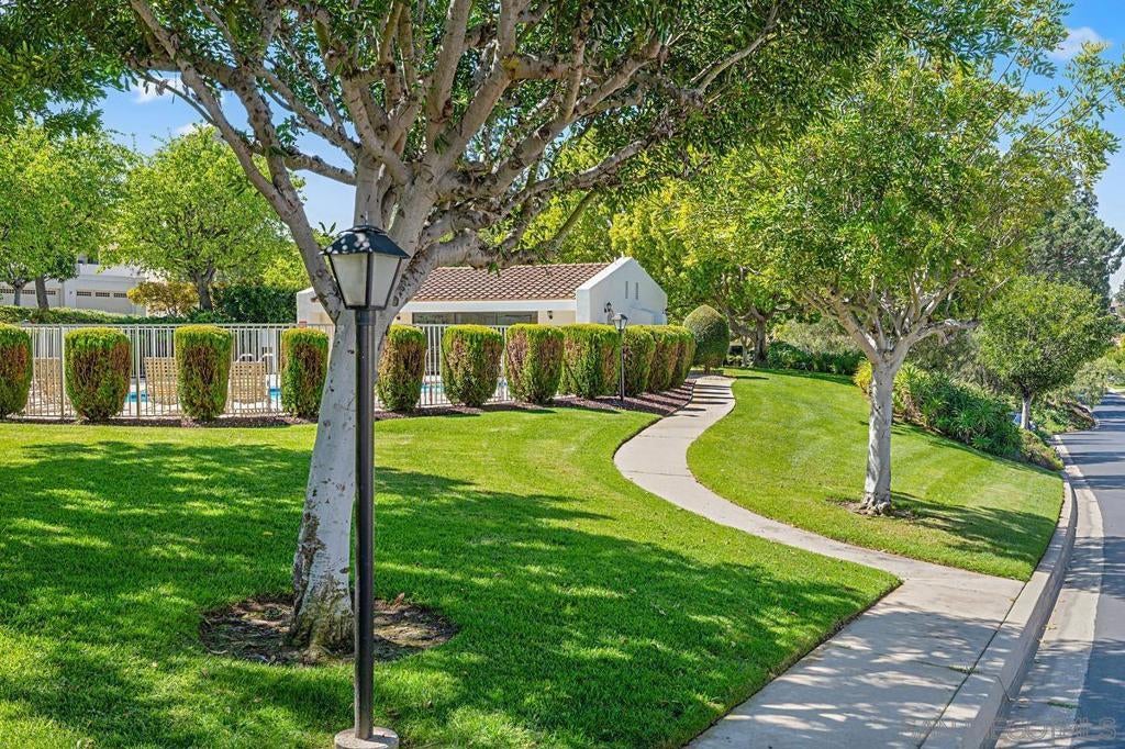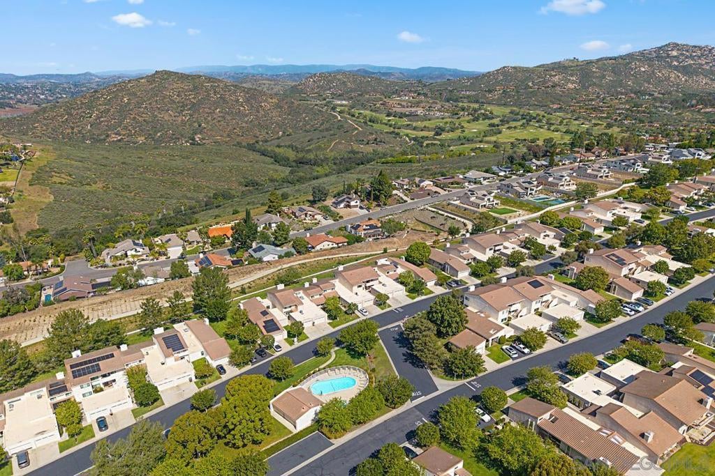 Now positioned to offer exceptional value in Stoneridge Chateaus, this light-filled upper-level home features vaulted ceilings, no neighbors above, and beautiful mountain and greenbelt views. One of the largest floor plans at 1,624 sq ft, it offers a sense of space, privacy, and quiet rarely found in condo living. The spacious layout includes 2 bedrooms, 2 bathrooms, and a versatile bonus room ideal for an office, den, guest room, or potential third bedroom. The living room features a fireplace and large windows that enhance the open, airy feel, while real cherry wood flooring runs throughout the main living areas and bedrooms. The updated kitchen offers a functional layout with ample cabinetry, breakfast area, and in-unit washer and dryer. The primary suite enjoys scenic views and generous closet space, while the secondary bedroom is well separated for added privacy. The elevated setting provides a more private and peaceful environment, along with better natural light compared to ground-level units. Additional highlights include an oversized detached garage and ample guest parking. The HOA covers water, trash, exterior maintenance, roof, landscaping, and master insurance. Located in a quiet North Poway community near Lake Poway, Bernardo Winery, shopping, dining, and Poway Unified schools.