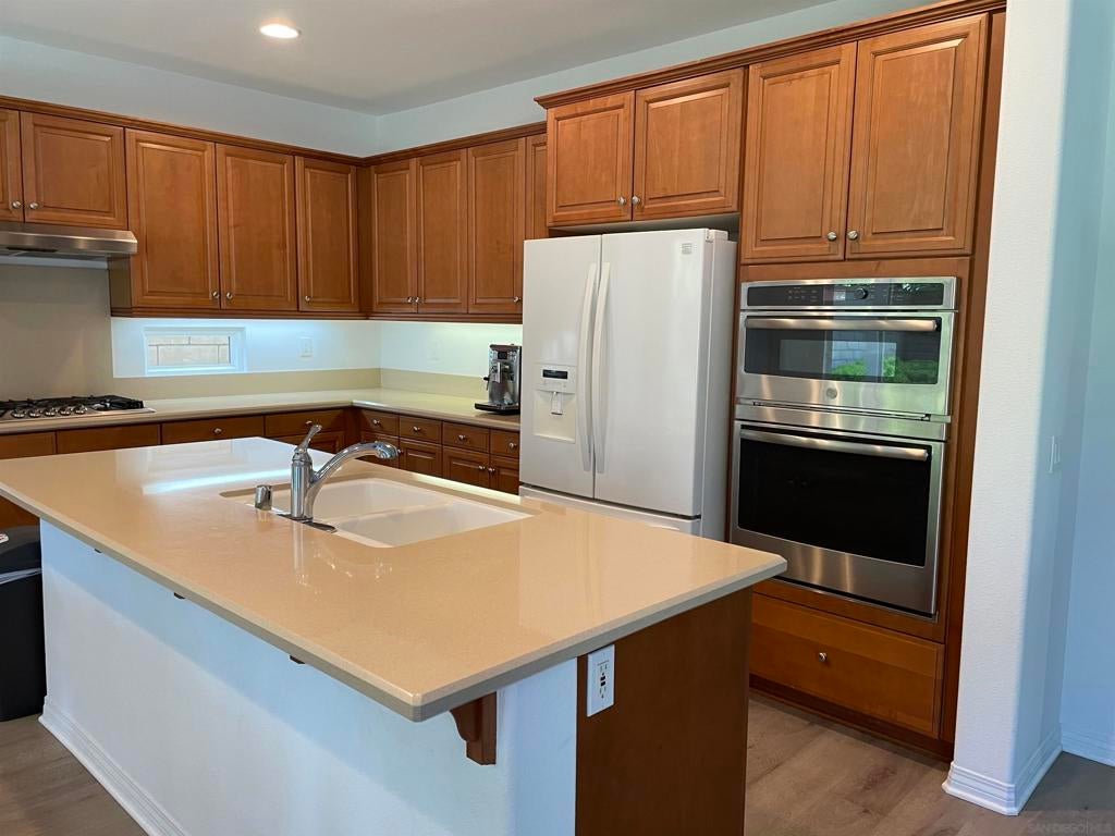 Lease this beautiful, 2 story, model home with an open floor plan in the Bordeaux/Sunstone Complex of Carmel Valley's Pacific Highland Ranch. This Bordeaux model features 5 bedrooms, 3 full baths, with 1 bedroom, 1 full bath down. Remodeled in 2021, the upgrades include stainless appliances in the kitchen with a center island and quartz counter tops, oven, gas cooktop, built in microwave, neutral, vinyl plank flooring down, designer carpet up, neutral paint, newer light fixtures, and faucets. Private yard with lawn and mature, lush landscaping maintained by owner. Quiet location and great access to freeway, and access to the premier, resort like Pacific Highland Ranch Recreation center with pool, fitness. Walk to Sycamore Ridge Elementary School, and Cathedral Catholic School. Approximately 1 mile to Pacific Trails Middle School, Canyon Crest Academy, and Pacific Highlands Ranch Town Center. Close to Trader Joe's, Starbucks, restaurants & beautiful beaches. Pets considered on a case by case basis with pet deposit, lawn care included. Ready to rent after April 5, 2026.